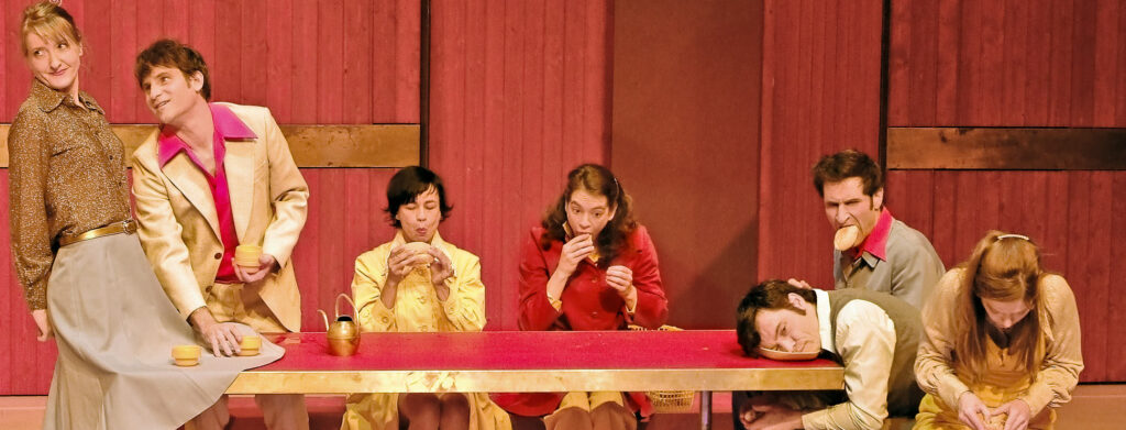 …Poetic and surreal is the effect of the production… The variety of human behavioral rituals, the often rationally unjustifiable processes in everyday family life, are translated by the seven actors into their specific theatrical language. In the process, words have become almost superfluous. The production lives from a visual language that gives the audience the possibility to associate freely and sets no limits to their imagination…