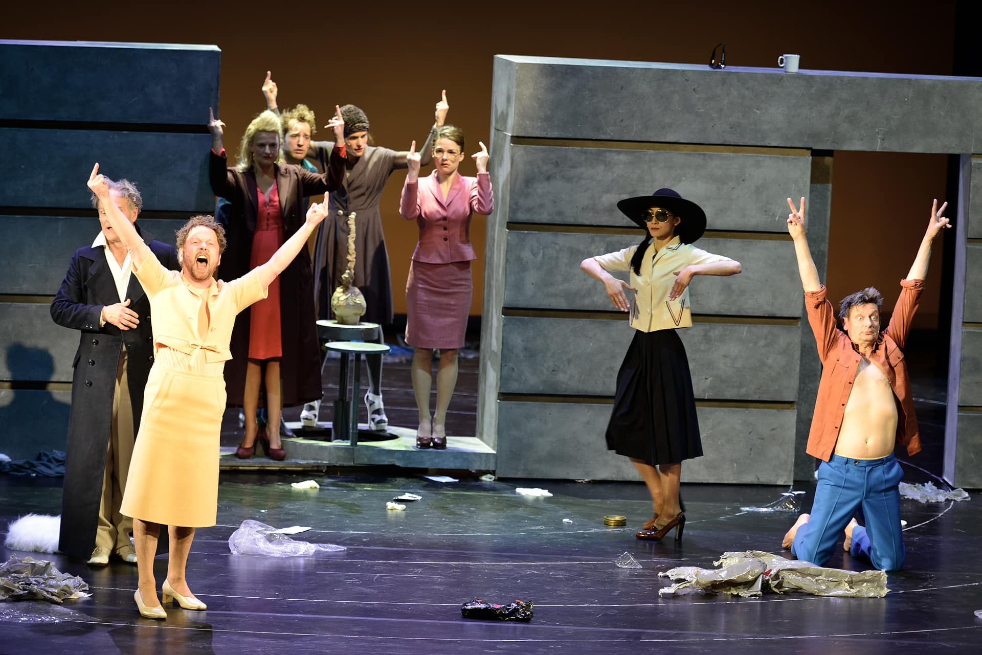 „Es wurde sagenhaft intensiv gespielt, unvergesslich die unzählbaren Heul- und Lacheinwürfe des in Frauenkostüm und Pumps gekleideten Philipp Caspari, die unglaublich heuchelnde Trauergemeinde mit den Damen Valerie Pachner, Marie Seiser und Michaela Steiger oder die asiatischen Körperbeugen von Yui Kawaguchi.“