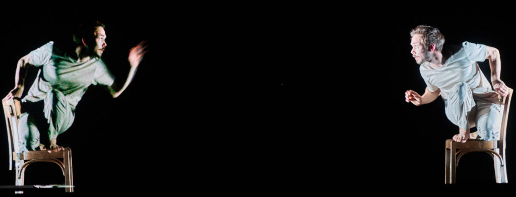 ‘We started in 2019, on the anniversary of the Bauhaus, when we were asked to work with the most advanced technology in theatre. At that time, we visualised abstract forms and historical images and related them to performers in ‘Verrat der Bilder’ (Betrayal of Images). That was our first encounter with this technology, on which the AR Loop Machine is now based. However, we soon realised that real people must not disappear behind the technology, which led to the form we are now presenting. An important part of the process was the ability to integrate motion data using motion capture suits, for which the coronavirus shutdown gave us extra development time. However, AR glasses remain an indispensable tool for such productions. All other projections in the room, often mistakenly referred to as holograms, are based on two-dimensional tricks (Pepper’s ghost from 1862). Documentaries of such illusions create expectations that cannot be fulfilled in reality, or only with glasses technology.’ [Oliver Proske in conversation with Thomas Irmer | Theater der Zeit 9/2022]