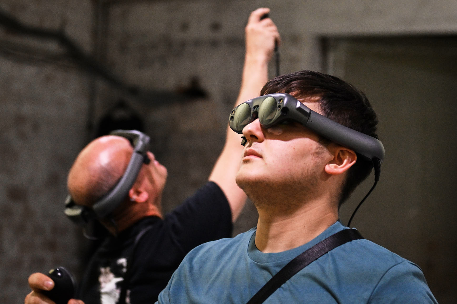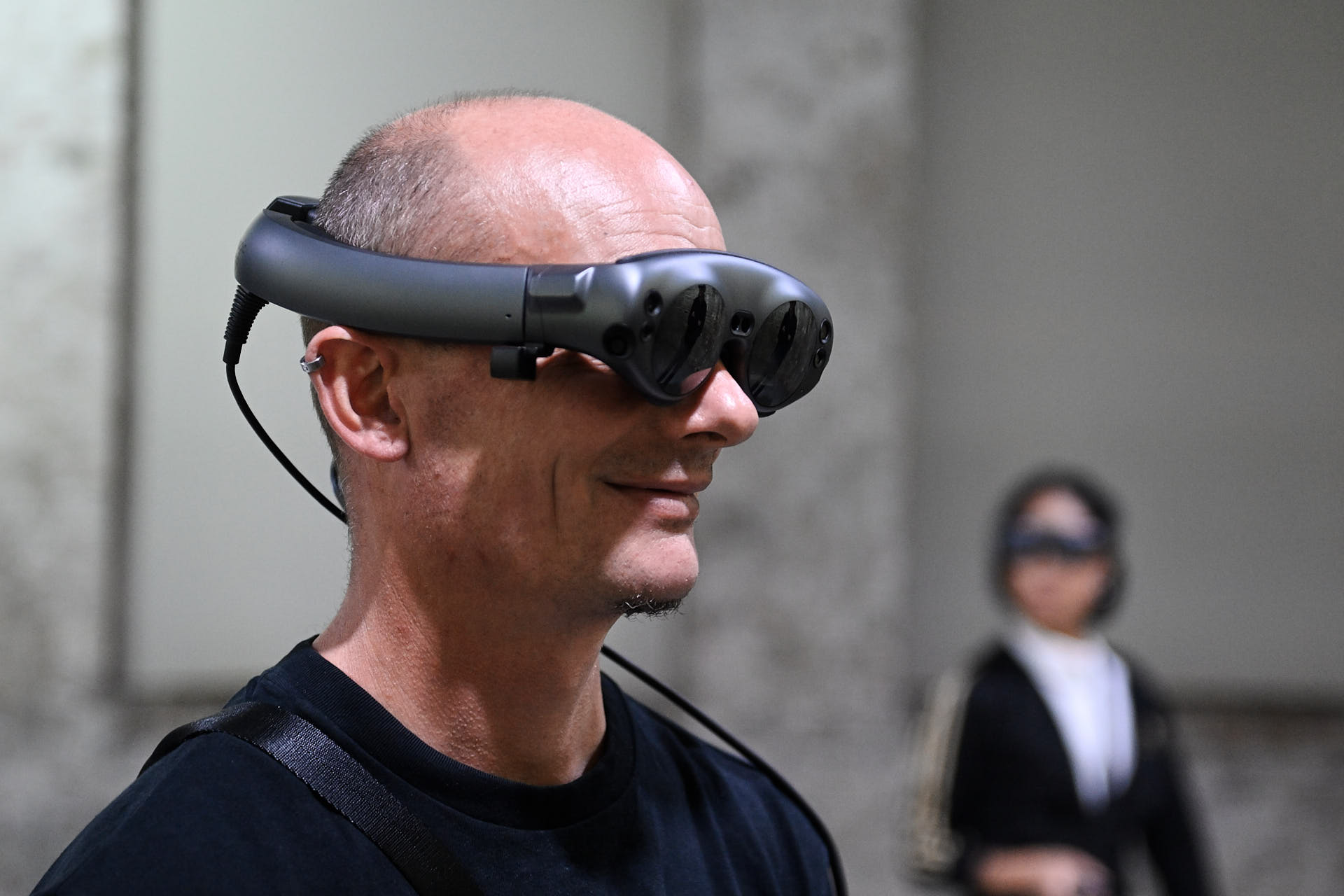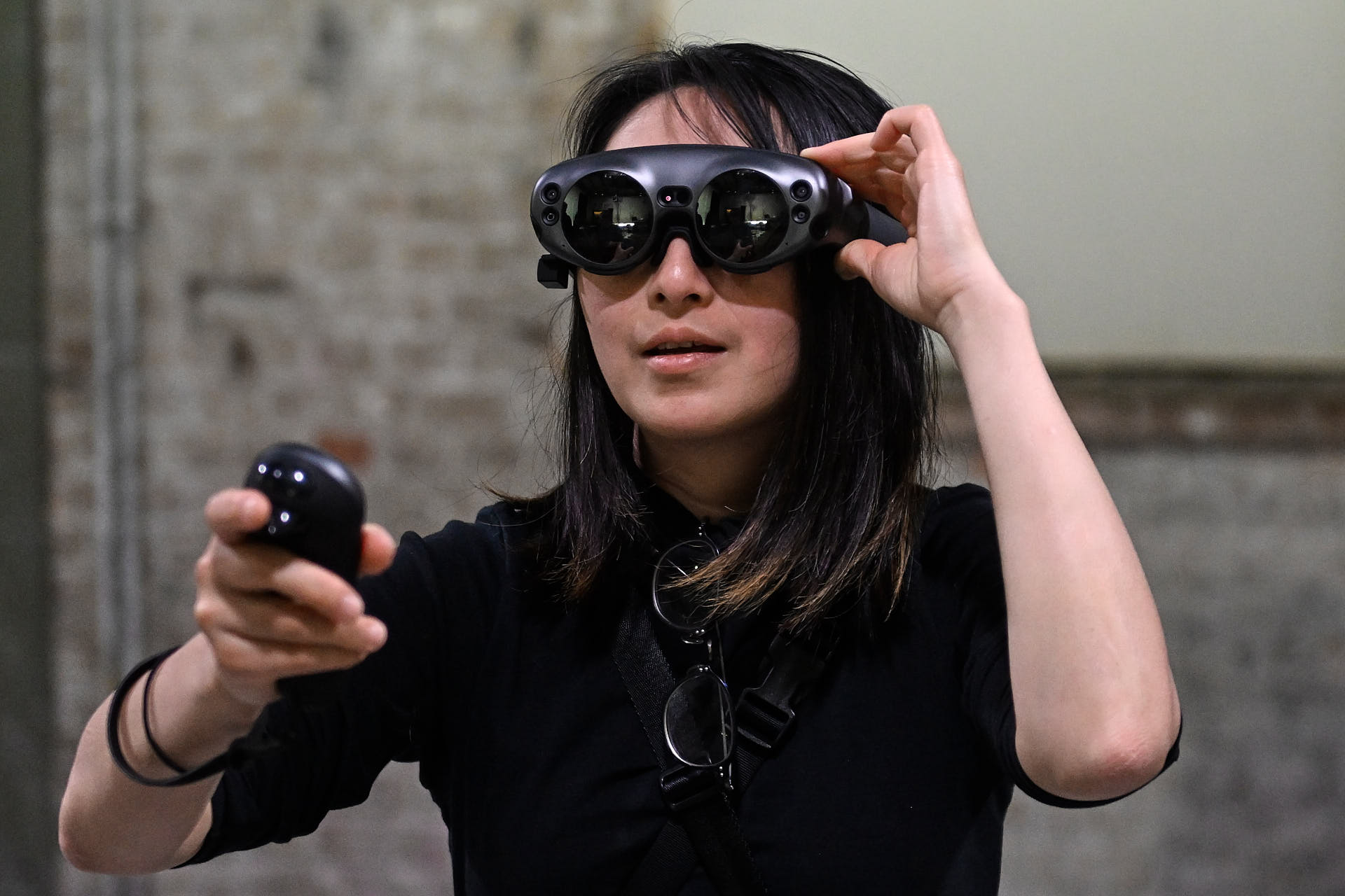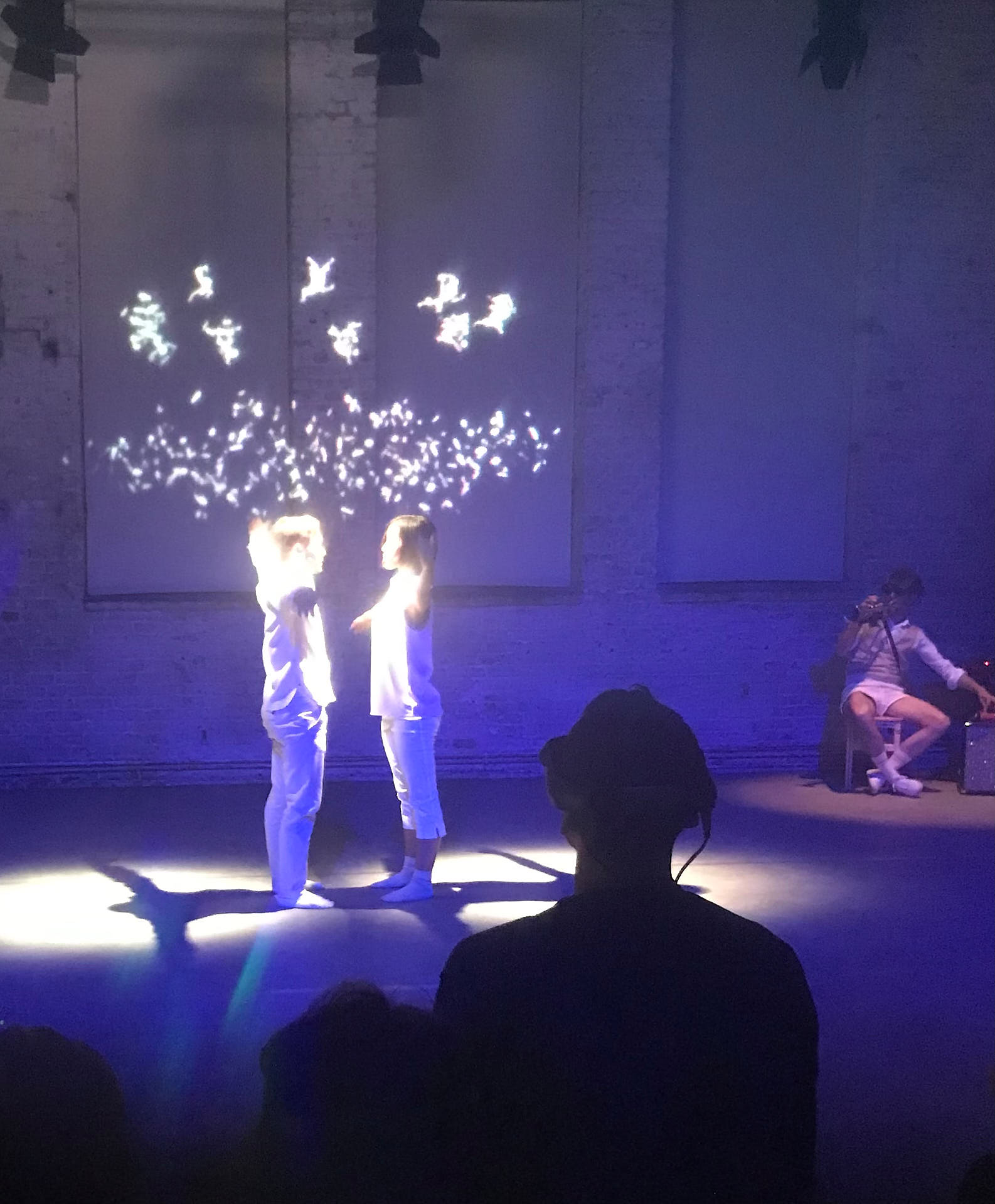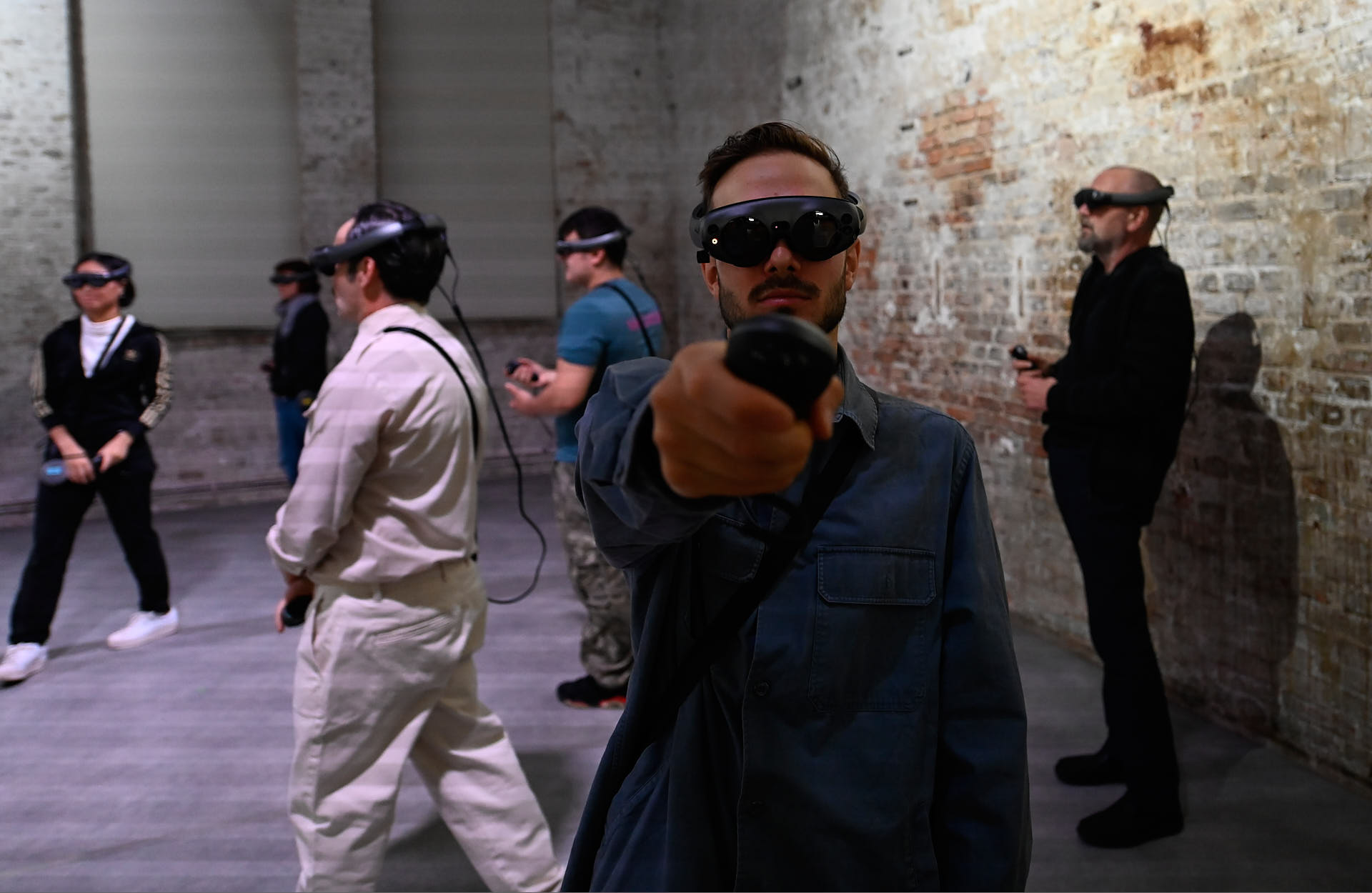 The movement sequences of the two dancers, recorded by means of motion capture suits, are transferred to AR glasses. Comparable to a loop station for live musicians, the AR-Loopmachine enables the performers to enter into a dialogue with their own moves and to dance a duet with themselves. This apparent interaction between real body and artificially created image is accompanied by the sound surfaces of trumpeter Paul Hübner. The relation between analogue reality and virtual extension shifts with the audience’s selectable point of view, which can move freely in the space: real and virtual bodies multiply, change their size – the game begins.