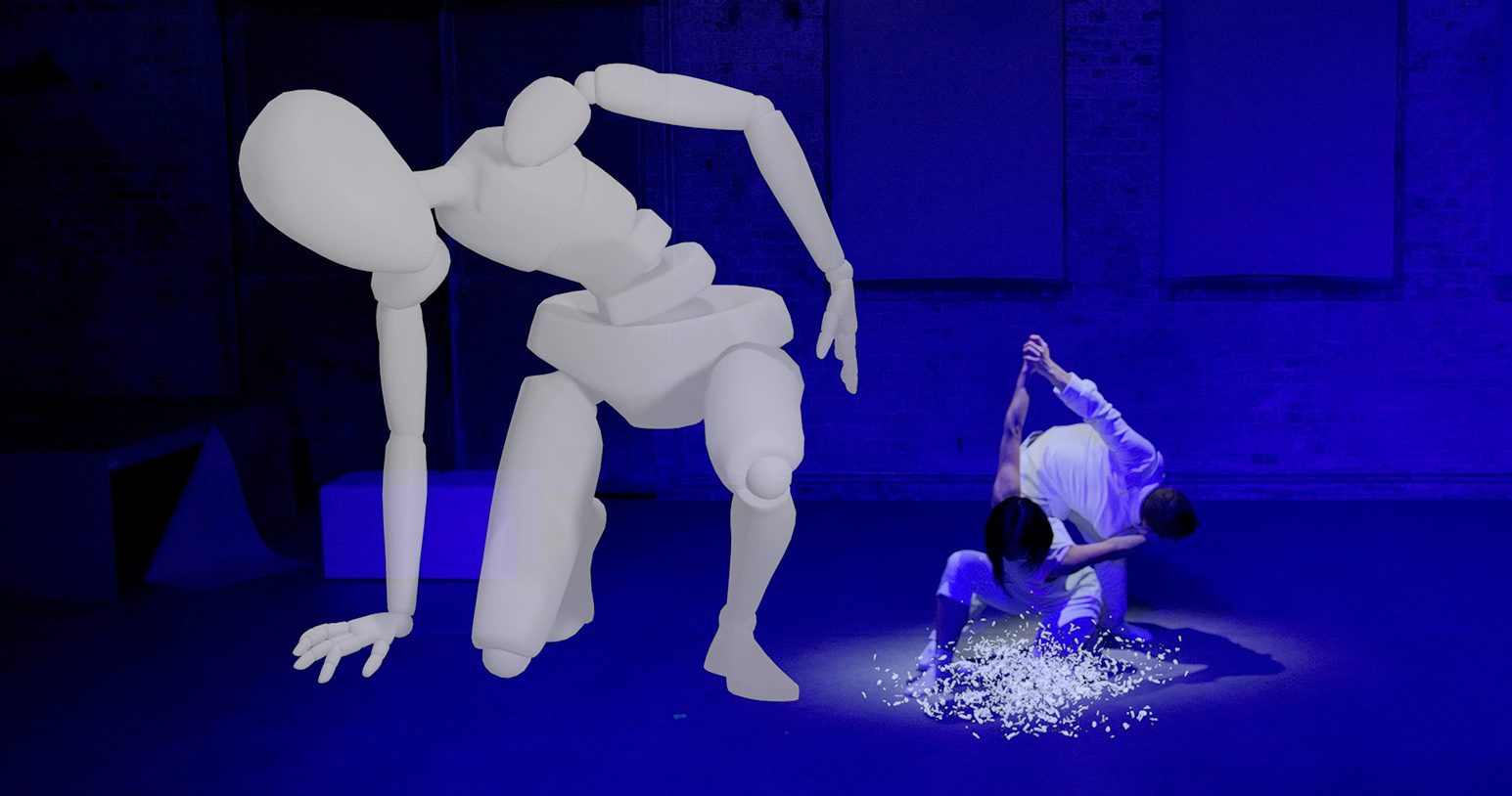 Konkret sind es ja eine Art Gliederpuppen, die sich zusammen mit den realen Tänzern in eurer Produktion "Du musst Dein Leben rendern!" bewegen.