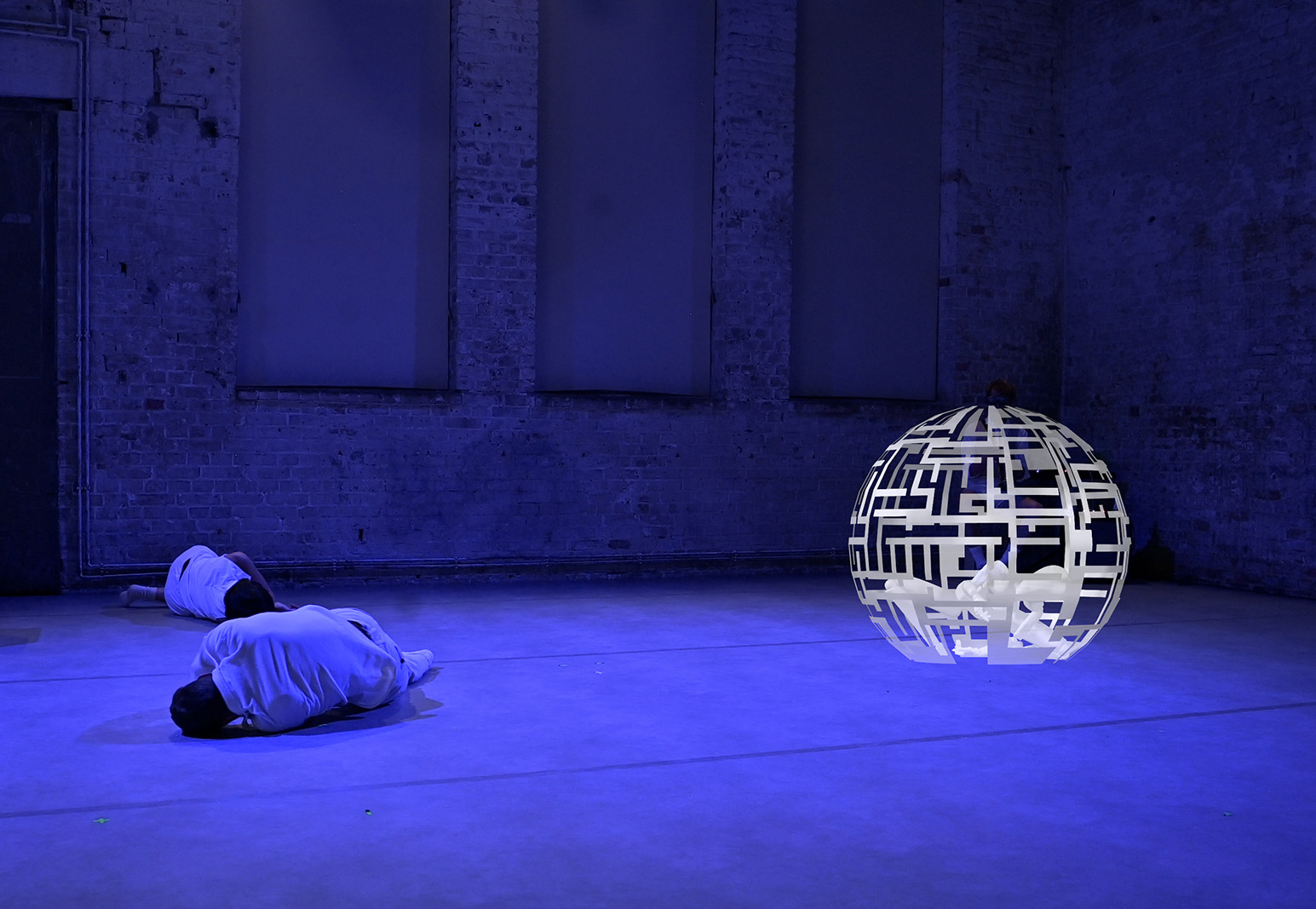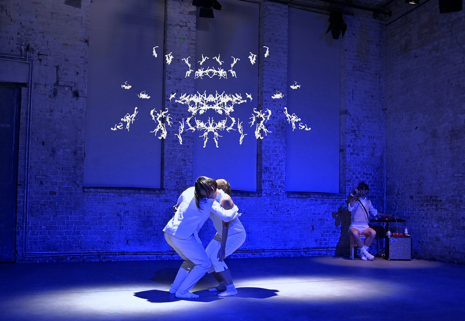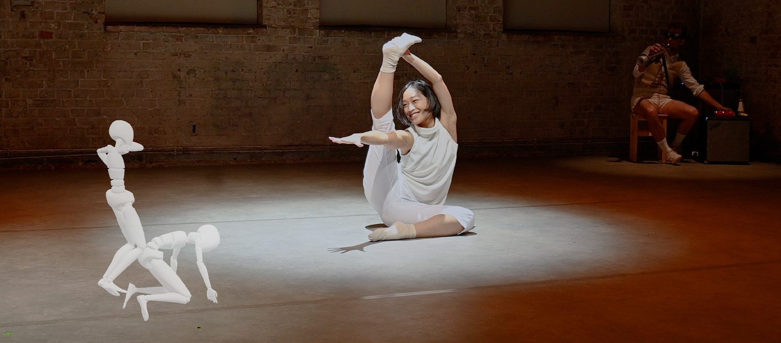Die mittels Motion Capture-Anzügen aufgezeichneten Bewegungsabläufe der beiden Tänzer*innen werden auf AR-Brillen übertragen. Vergleichbar mit einer Loop Station für Live-Musiker*innen ermöglicht die AR-Loopmachine den Performer*innen, mit den eigenen Moves in einen Dialog zu treten sowie ein Duett mit sich selbst zu tanzen. Begleitet wird diese scheinbare Interaktion zwischen realem Körper und künstlich erzeugtem Ebenbild von den Klangflächen des Trompeters Paul Hübner. Die Relation zwischen analoger Wirklichkeit und virtueller Erweiterung verschiebt sich mit dem wählbaren Blickwinkel des Publikums, das sich frei im Raum bewegen kann: reale und virtuelle Körper multiplizieren sich, verändern ihre Größe – das Spiel beginnt.