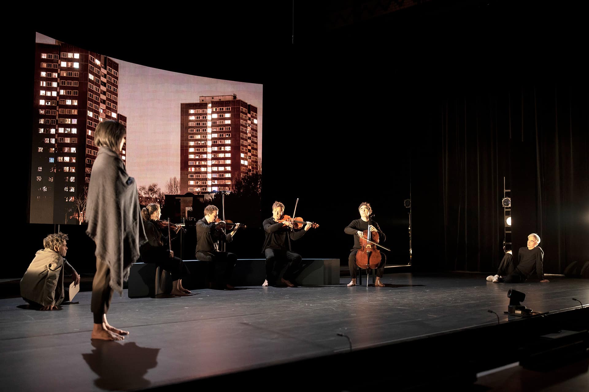 „Auch in dieser Spätphase geht es noch um diese klassizistischen Gegensätze, die Beethoven sehr fein und unendlich ausdifferenziert hat. Und das nutzt jetzt dieses Theaterkollektiv, um das Hören mit szenischen Mitteln sichtbar zu machen … ein ganz vielschichtiges und vielseitig zu deutendes Bild, aber immer auf Beethoven bezogen und das ist schon stark!“