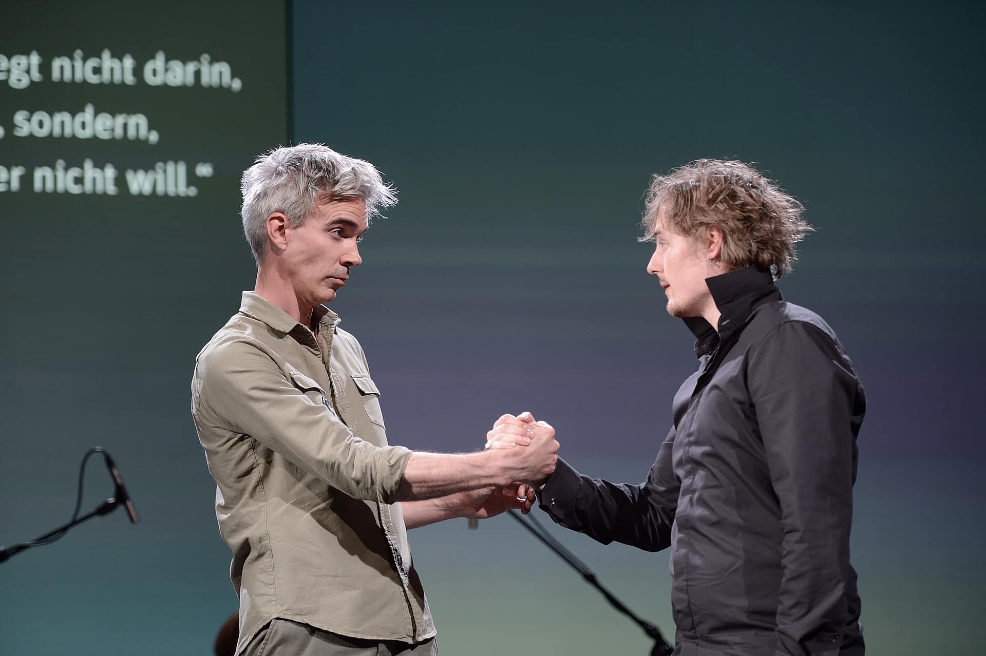 Zwei Männer begegnen sich auf der Bühne. Der eine eben noch Schauspielstudent, der andere seit Jahren Tenor. Der eine forsch und konfrontationslustig, der andere melancholisch und versonnen. Auf der Suche nach Gegensätzen durchleuchten die beiden Charaktere ihre Denk- und Verhaltensmuster und spiegeln immer mehr auch die großen Fragen und Stimmungen unserer Zeit. Wie viel Freiheit haben wir „anders“ zu sein? Wie schwer ist es die gesellschaftliche Freiheit zu schützen?