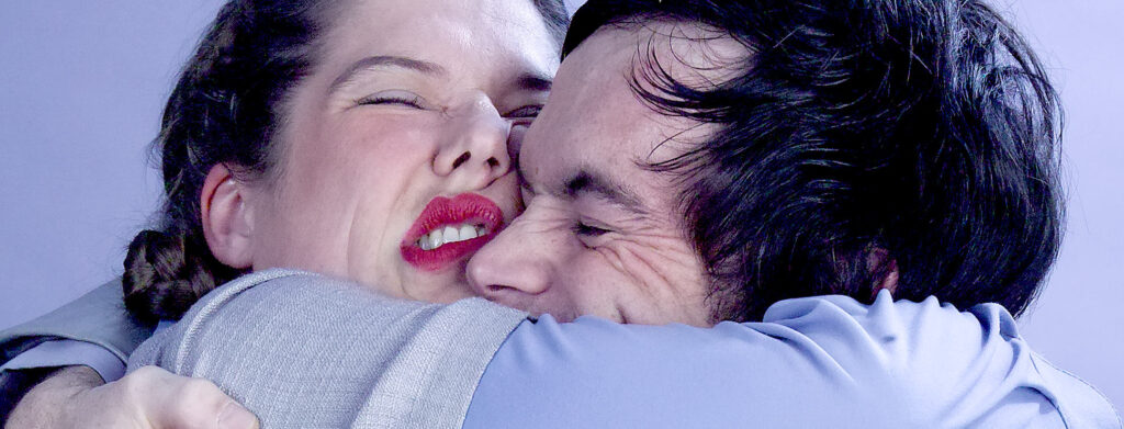 … “Do I actually determine what happens, or does my destiny determine,” it says at the beginning of the evening…. There were once decisions that were made and evoke memories of them being made. The stories that took place in between float silently like balloons above the characters, who move like lemurs in time loops. An oppressively beautiful evening, as sure of form as it is gentle, which wrings a few happy moments from human states of exhaustion….