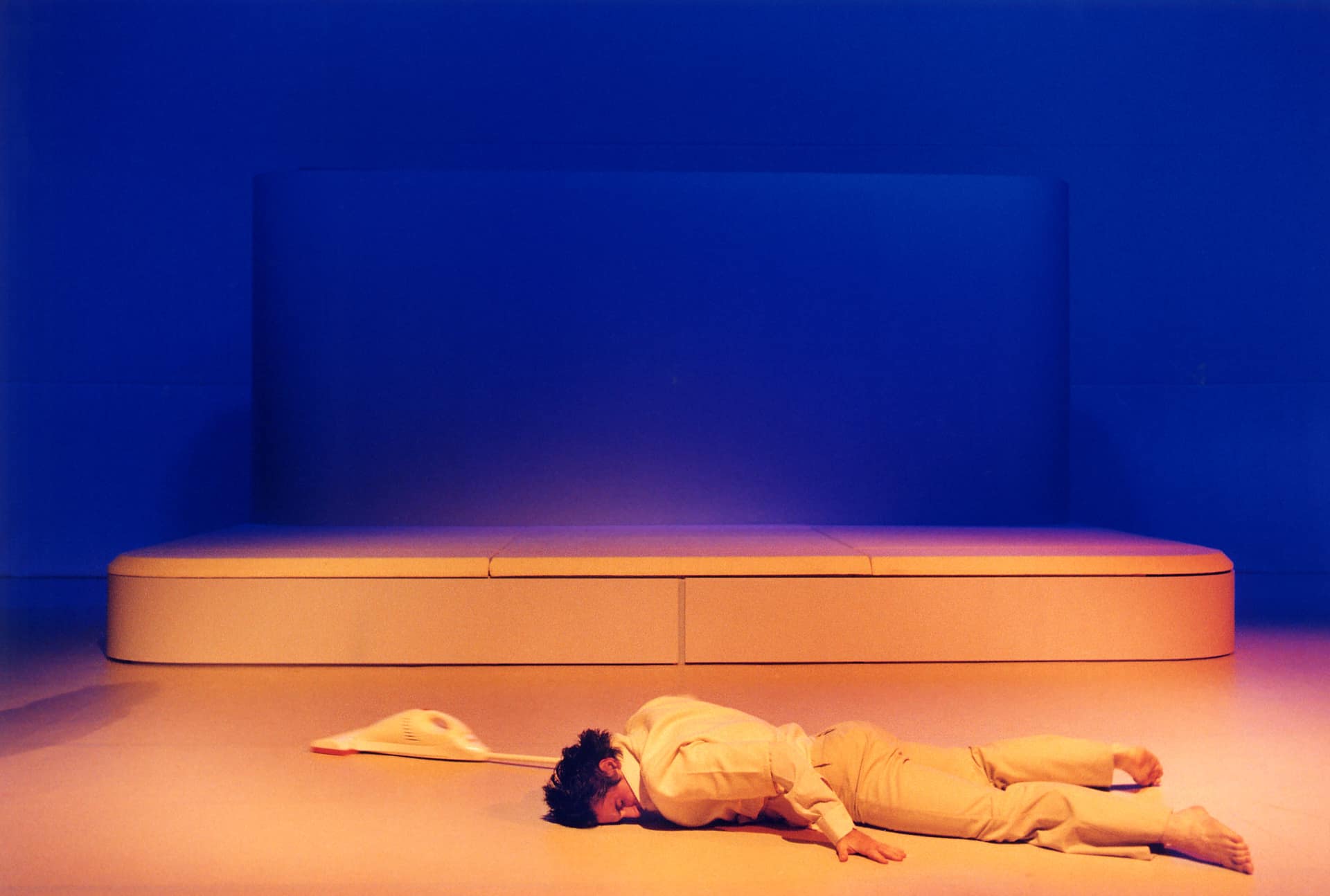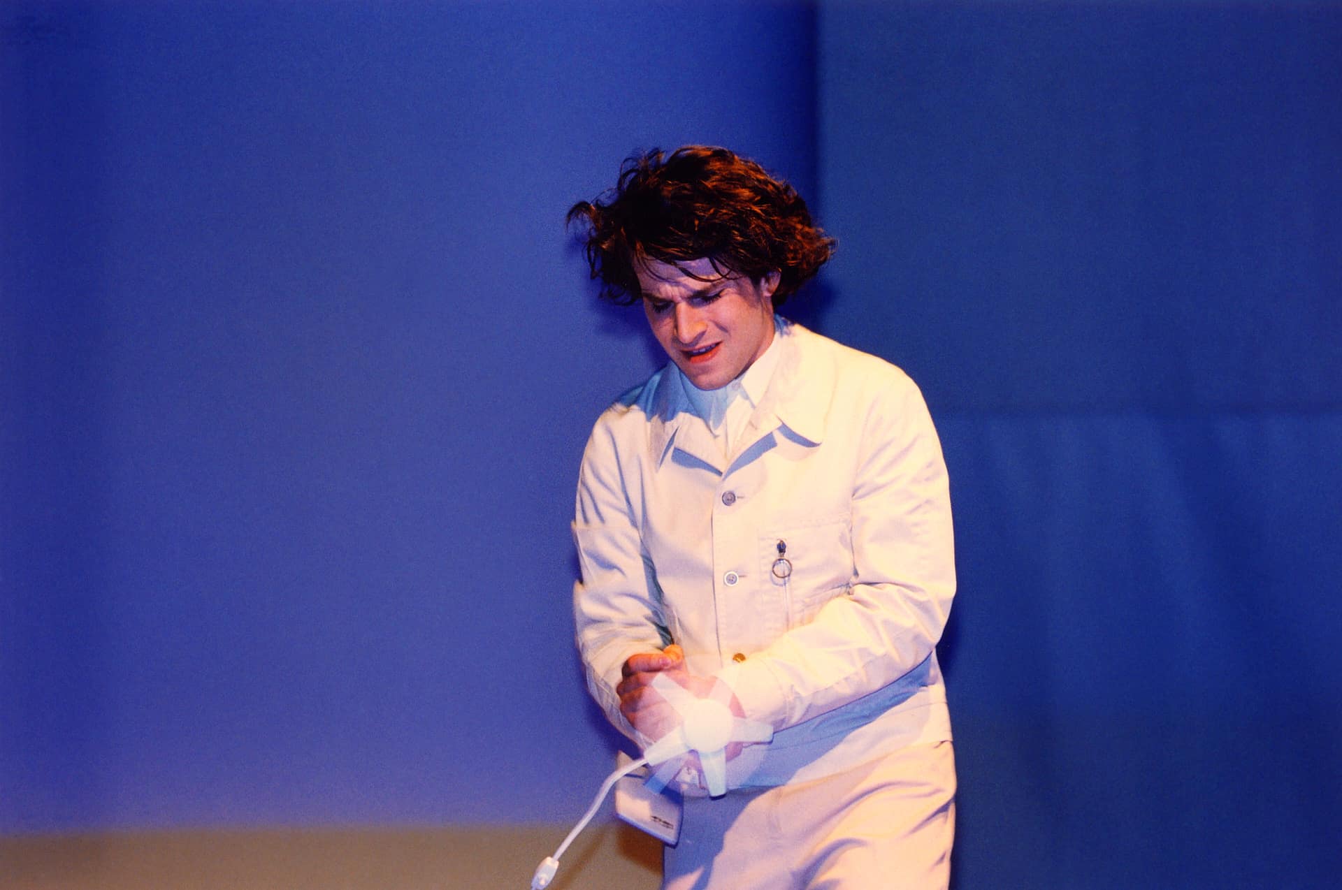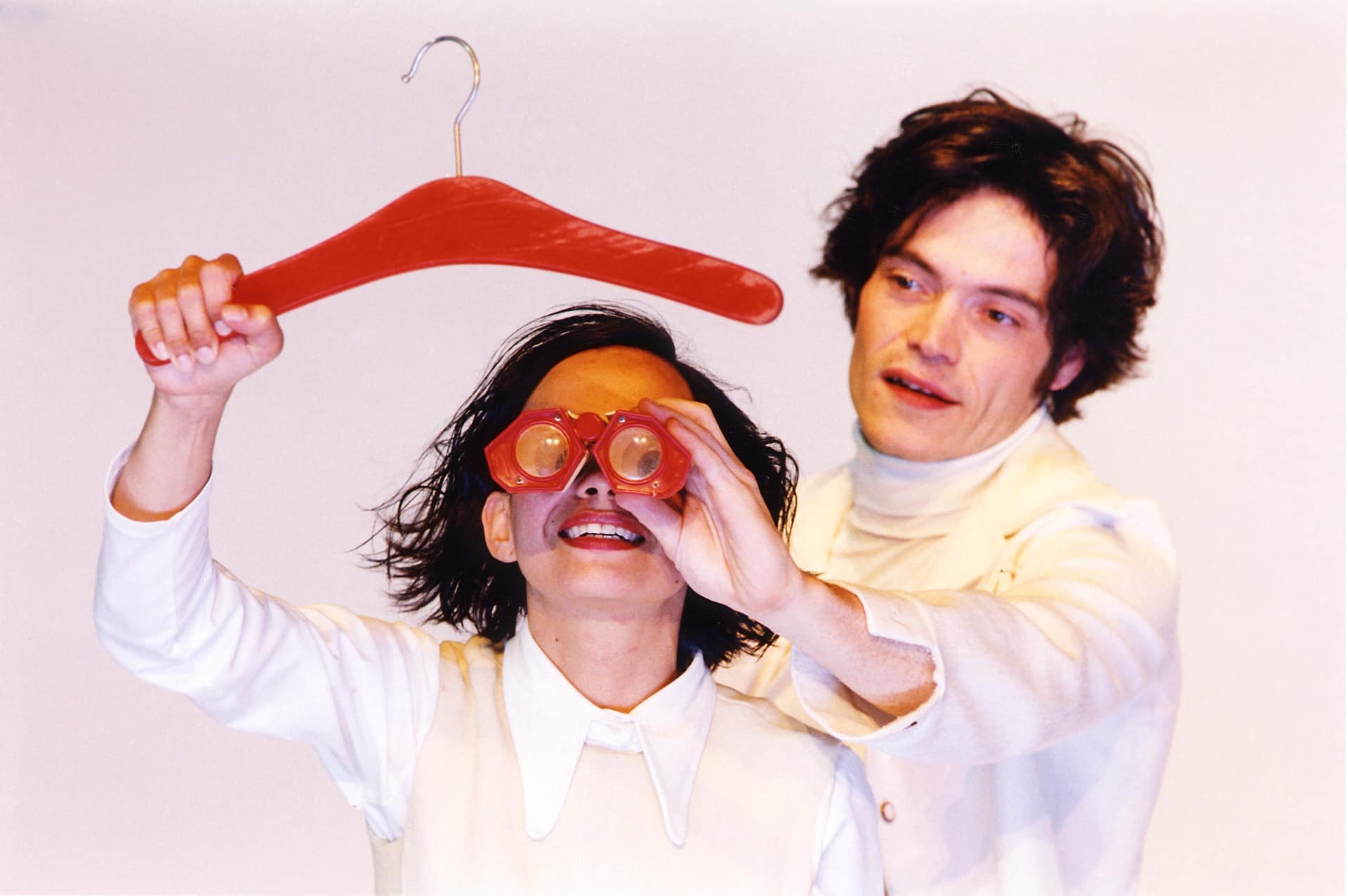 …Fast scheinen die Darsteller in ihren weiß, creme und beige getönten Kunstuniformen, verfremdeter Alltagskleidung, mit dem weißen Bühnenbild zu verschmelzen – sie wollen sich nicht in den Vordergrund drängen, weder farblich noch durch übertriebene Dramatik. Sie bleiben charmante Vortänzer und spleenige Opfer der Dinge und verschwinden auch gerne in den Klappen, Ritzen und Zelten, die sich im Bühnenbau auftun…
