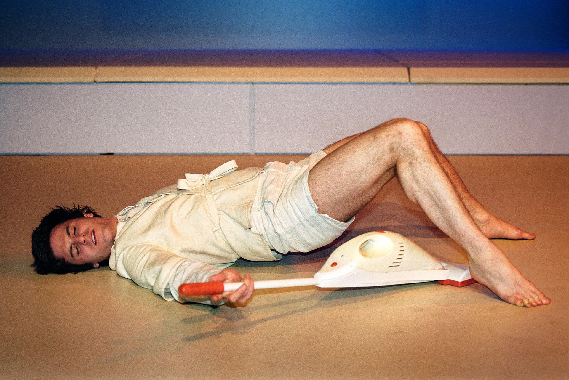 Von der ersten Sekunde an hat diese Performance eine Form: somnambul schon treten die Darsteller auf die Bühne, somnambul bleiben sie, auch dann noch, wenn sie die verschiedensten Stadien der Hysterie und der Verzückung durchlaufen. Die Gesichter sind zu Masken geschminkt, die Frisuren festgegelt in einen Zustand stürmischer Zerzaustheit. Es gibt Typen, aber keine Figuren, wiederkehrende Verhaltensweisen, aber keine Charaktere, Texte, aber keine Dialoge und Interaktionen, aber keine Handlung. Das elegant designte, in schlichtem creme gehaltene Bühnenbild ist selbst noch einmal Verdopplung einer Bühne, aber auch und vor allem eine Wundertüte, die sich öffnet, aus der die Darsteller steigen, aber auch jene Gegenstände entnommen werden, die ganz fraglos im Zentrum dieser Aufführung stehen. Vorgeführt wird, liebevoll, enthusiastisch und erfindungsreich, eine Welt der entzauberten Alttags-Dinge, die, auf ironische Weise, versteht sich, wieder verzaubert werden sollen. Es sind, das kommt einer solchen Absicht zu Hilfe, Dinge nicht aus unserer Gegenwart, sondern aus den siebziger Jahren, wie man sie bereits in den retro-regressiv gestimmten Installationen der letzten beiden Berlin-Biennalen bewundern konnte. Scheußliche Gerätschaften, die man liebt, gerade weil sie so unprätentiös hässlich sind: Staubsauger, Glastragekörbe aus Plastik, ein aufblasbares Kissen, Taschen, Pullover, Teppichreiniger, Teetassen und vieles mehr. All das ist freigegeben zur Adoration zum einen, zum anderen und zugleich aber zum kreativen, aus allem haushaltspraktischen Zusammenhang gerissenen, in höchst komische neue Kontexte versetzten Spiel. Alle Verwendung ist Zitat: verfälschendes, groteskes, ironisierendes, an den ursprünglichen Zusammenhang angelehntes Zitat. Mal sanfter, mal lauter, mal durchsichtiger, mal absurd kommentiert wird dieses fortgesetzte, zu einzelnen Nummern geschnittene Dauerzitat, dieses laufende Band der Konsumartikel, durch einen nahtlosen Musikteppich. Der setzt allerdings bewusst einen Gegenakzent zur Warenwelt, genauso wie die Darsteller, deren somnambules Agieren, deren Maskenhaftigkeit noch jede ihrer Verhaltensweisen zum bloß Zitathaften konterkarieren. Was Nico and the Navigators auf der Grundlage dieses Prinzips aber auf die Bühne zaubern, ist in erster Linie eines: herrliche, ins Groteske vernarrte, umwerfende Comedy. Sei es die laute und wortreiche Anpreisung eines Kleiderbügels, sei es das Minidramolett um ein gestohlenes Fahrrad mit Luftkissenschlacht oder eine Teebeutelverkaufsvorführung, die in Chaos und Zerstörung endet: stets ist das Timing perfekt, sind die absurd-komischen Akzente präzis gesetzt, treffen Regie und Darsteller punktgenau die Linie zwischen Wiedererkennbarkeit und Überzeichnung, die es zu treffen gilt, will man weder in bloße Satire noch in bloßen Nonsens abdriften. Lilli in Puttgarden ist klug, unprätentiös und komisch, mit einem Wort: die reine Freude.