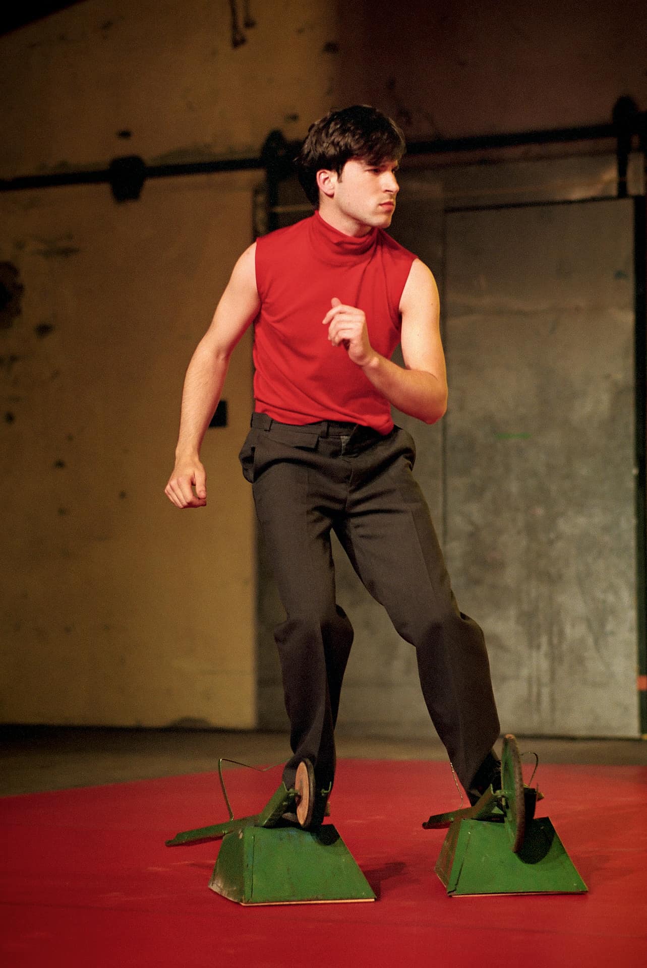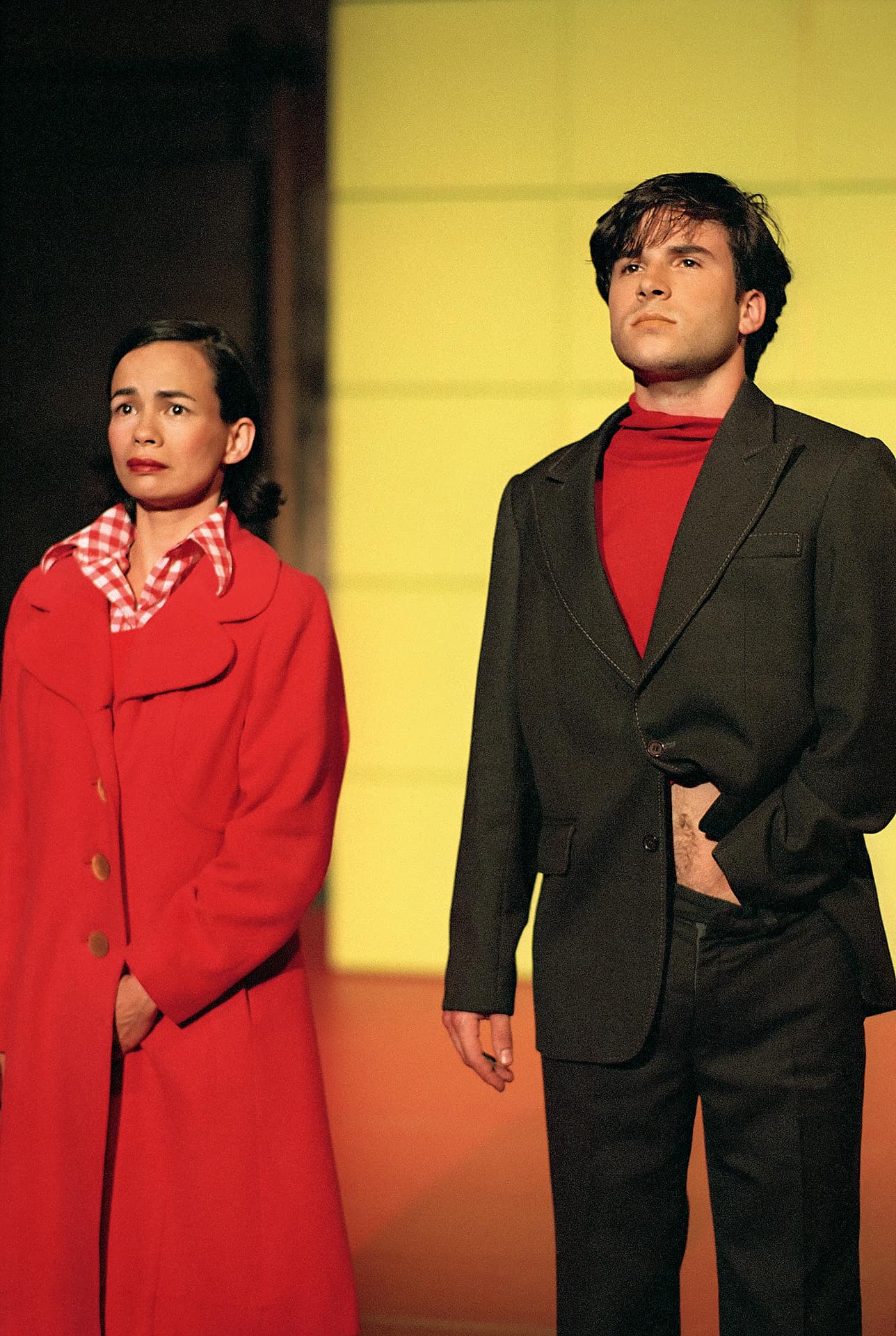 Sie kommen in Paaren, aber sie bleiben doch Einzelne. Zu Tangoklängen berühren und verführen sie sich selbst, obwohl ein möglicher Partner unmittelbar neben ihnen steht. Vor der grünen Kassettenwand, die ihre Geheimnisse nur allmählich preisgibt, verraten die farbigen Schatten mehr über die wahren Absichten als jene, die sie werfen. Und nichts scheint die tiefe Traurigkeit der Menschen, die sich hier begegnen, besser ausdrücken zu können als das quietschende Rad einer Kinder-Schubkarre.