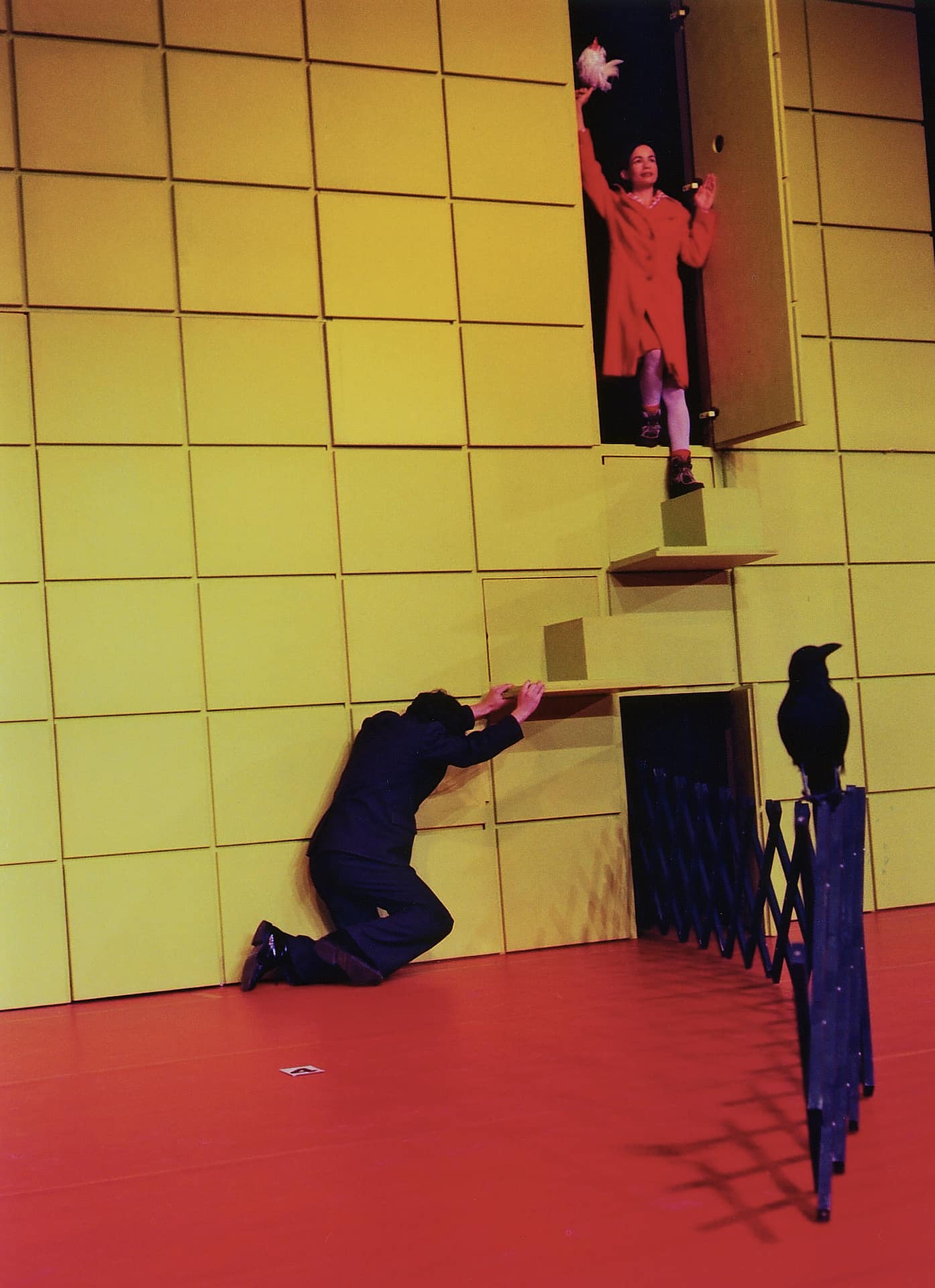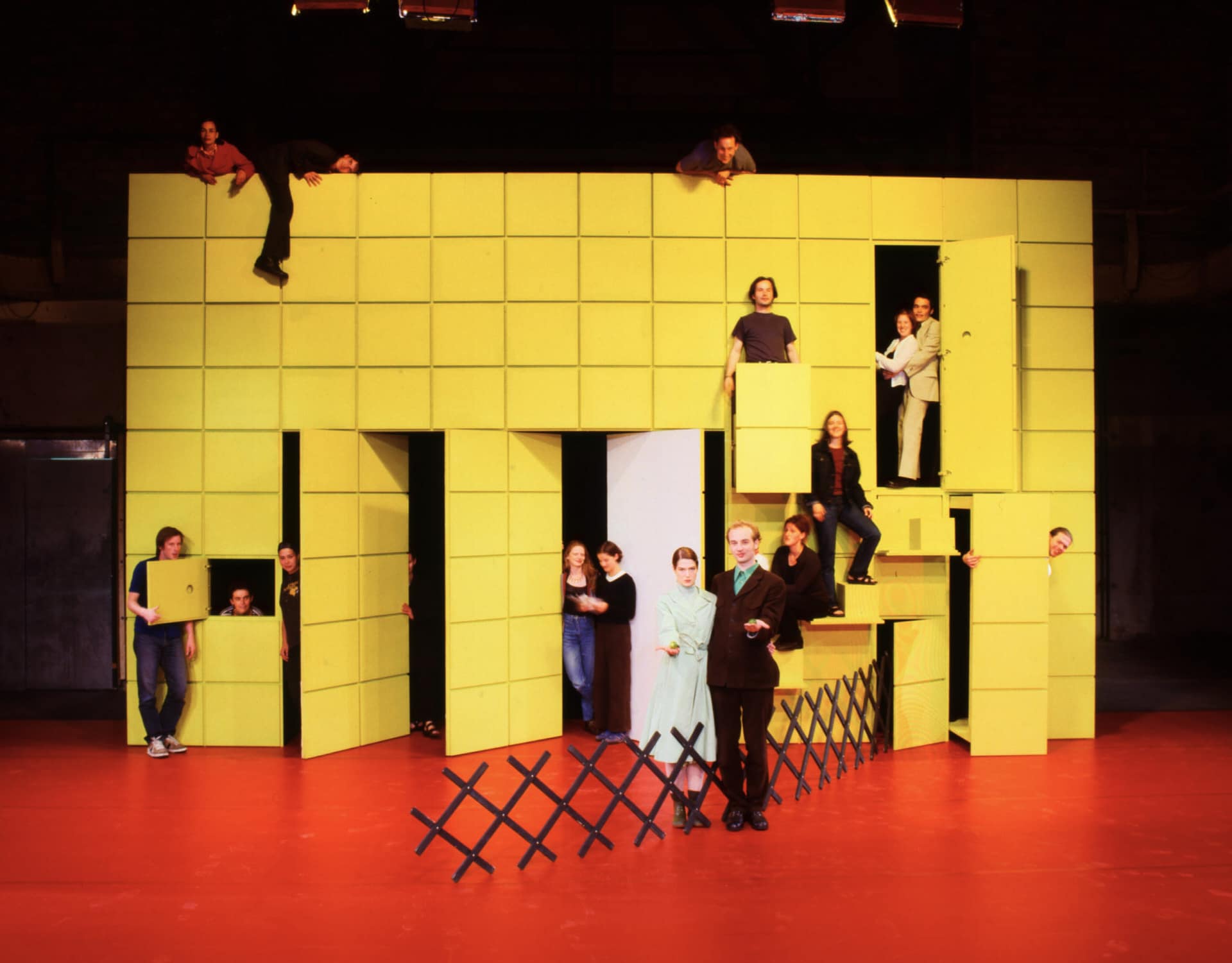 Schon in dieser frühen Arbeit, die später auch zum Auftakt des Triptychons Menschenbilder erklärt wird, zeigen Nico and the Navigators jene Stilmittel, die sie im Laufe der folgenden Jahre perfektionieren werden – ihren dunkel grundierten Humor, ihre Arbeit mit verrätselten und leitmotivisch wiederkehrenden Sätzen und das Spiel mit zweckentfremdeten Requisiten, die sich ihrer Besitzer bemächtigen. In dieser Meditation über Formen und Rituale des Abschieds wird ständig das Gefühl vermittelt, dass hier und jetzt etwas beginnen könnte – aber dass doch alles immer nur zum Ende strebt. Die Varianten des Verlierens werden auf vielen Ebenen durchgespielt, in Liebe und Arbeit, Heimat und Leben … und tote Vögel erscheinen dabei wie Sinnbilder der Sehnsucht. Oliver Proskes Bühnenbild bietet schier unerschöpfliche Möglichkeiten für überraschende Auftritte und Abgänge; Teile seiner raumgreifenden Wand funktionieren wie Wetterhäuschen oder Kanzeln, sie geben Treppen oder Jägerzäune frei und können in halsbrecherischen Aktionen erklommen werden. Und dabei kann man bereits erste Konstanten der Ur-Besetzung beobachten: Julius Weilands schlaksige Komik, Martin Clausens improvisatorischen Furor oder Sinta Tamsjadis mysteriöse Fremdheit. Am Ende aber steht ein ironischer Trost: Man muss den Kopf nicht gleich in den Sand stecken. Es kann auch ein Eimer sein.