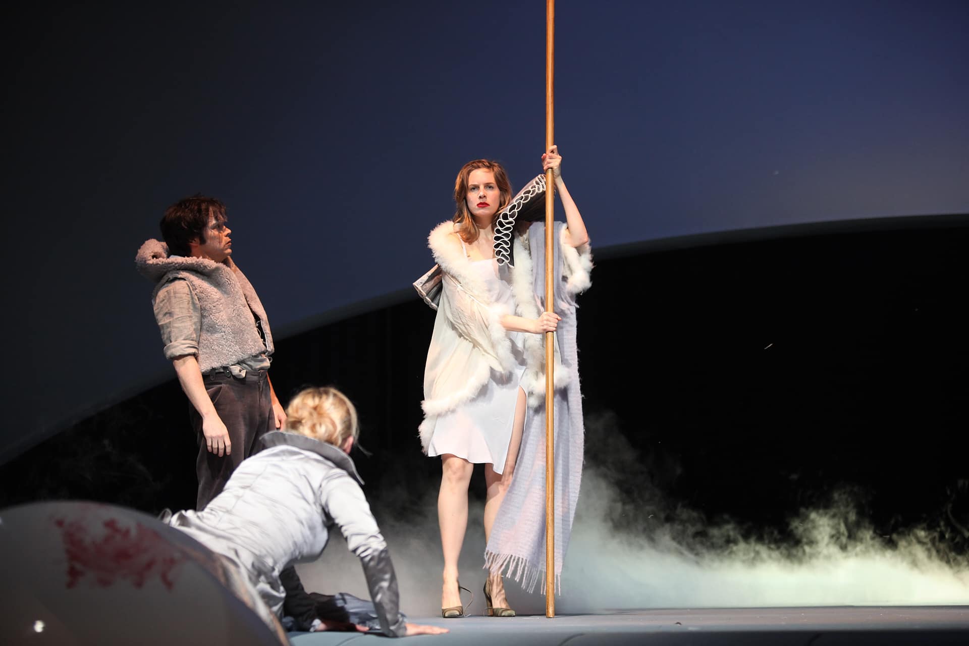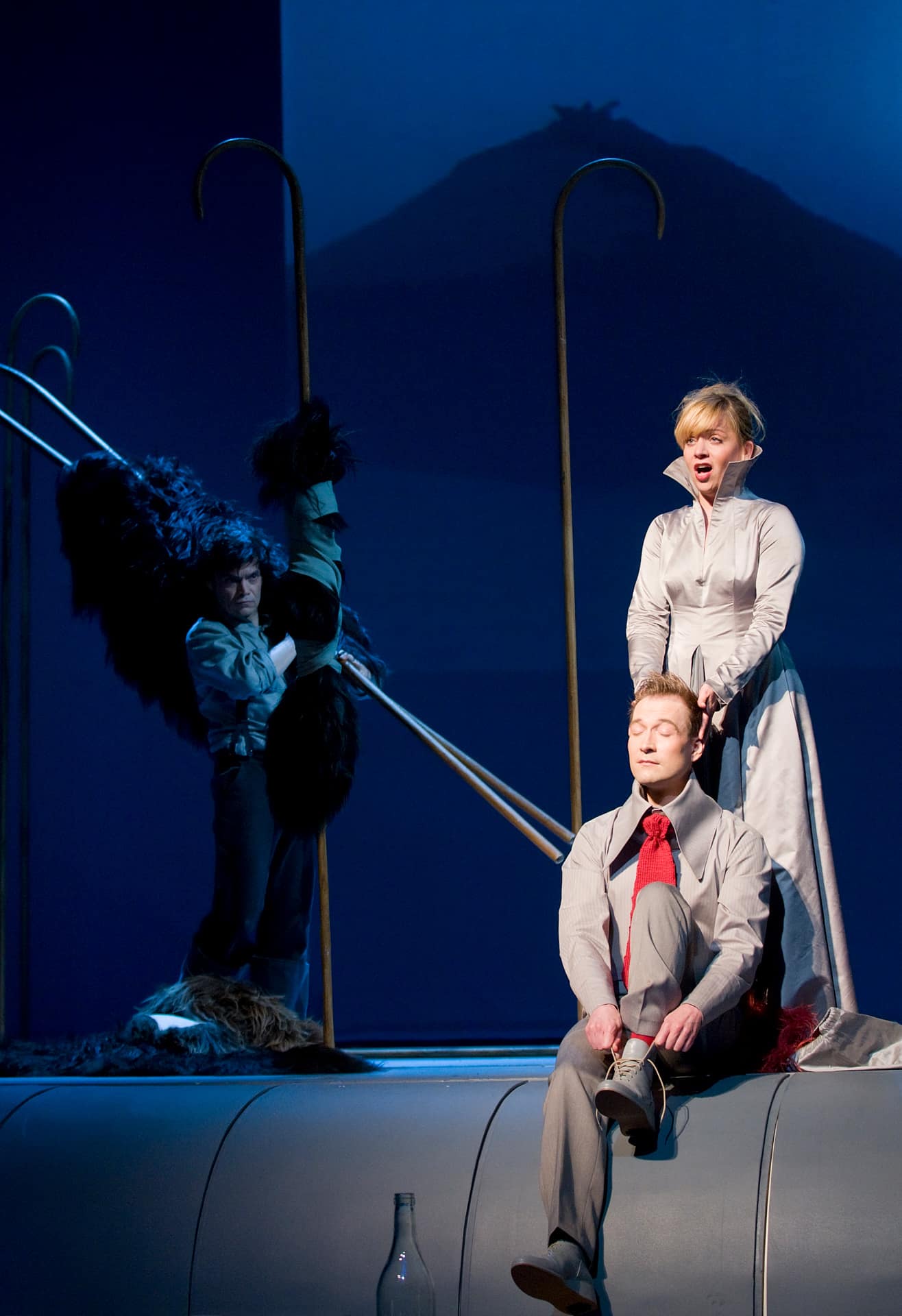 …an Halles Opernhaus kümmert sich die Berliner Theater-Macherin Nicola Hümpel keinen Deut um das Woher und Wohin ihrer Figuren und versucht gar nicht erst, glaubwürdige Konstellationen für das allzu Unwahrscheinliche zu finden. Ein poetischer Reigen, der seine Bilder aus der musikalischen Wirkung des Augenblicks schöpft…