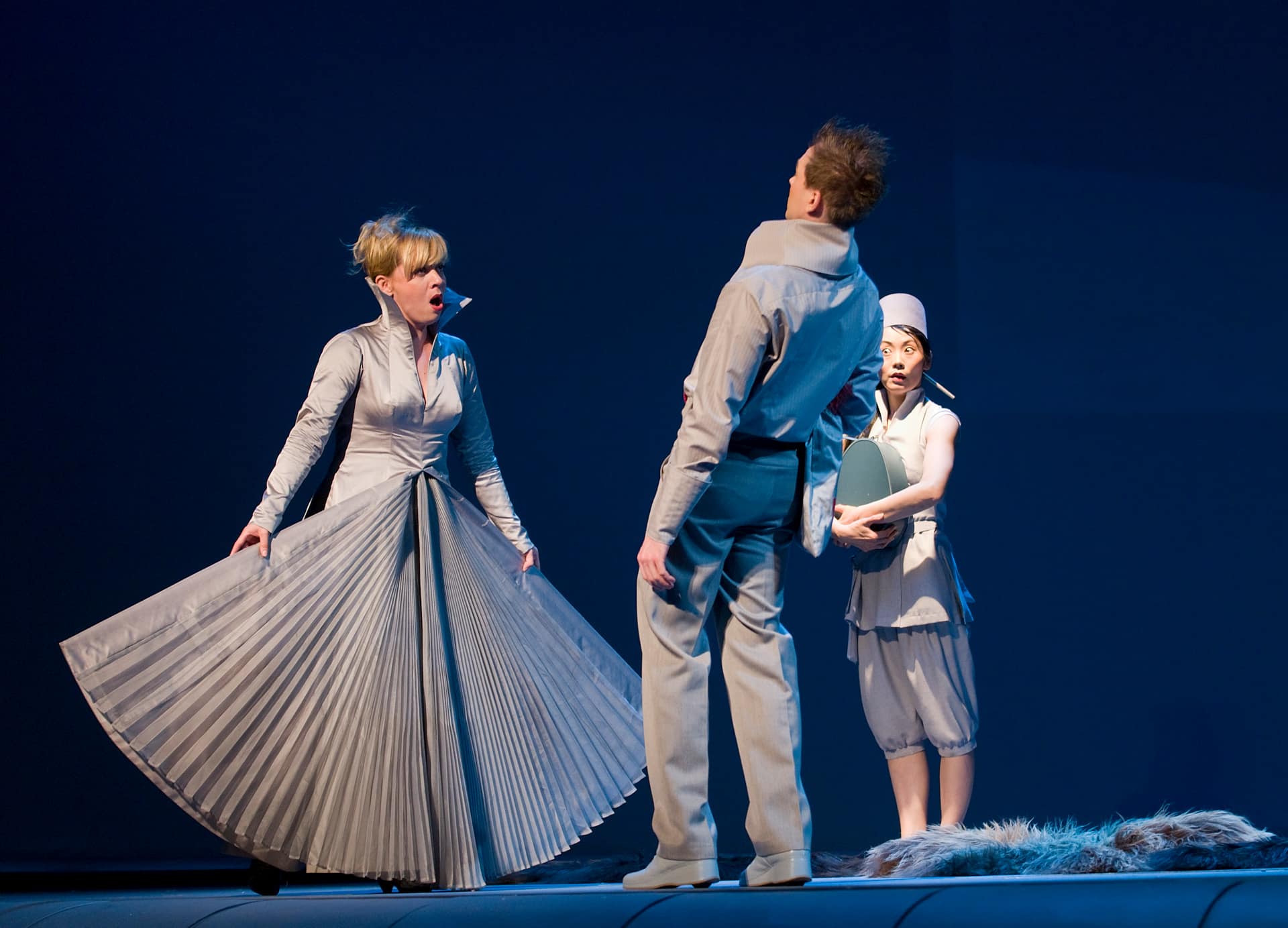 Federleicht: Nico and the Navigators spielen „Orlando“ bei den Händel-Festspielen in Halle Die Sache mit dem Liebeswahnsinn ist ein echtes Problem. Dass einer durchdreht, weil die Frau, die er liebt, mit einem anderen durchbrennt, kann man ja noch verstehen. Aber spätestens wenn eine Handvoll Opernminuten später die ganze Raserei quasi durch ein Fingerschnipsen wieder abgestellt wird und der eben noch Tobsüchtige plötzlich kreuzbrav die realen Beziehungskonstellationen abnickt, dürfte jedem klar sein, dass der Handlung von Georg Friedrich Händels „Orlando“ mit den Erklärwerkzeugen des psychologischen Realismus kaum beizukommen ist. Denn das 1733 uraufgeführte Stück ist zwar eine der populärsten Händel-Opern, aber eben auch eine der schwierigsten. Erst vor ein paar Monaten war an der Komischen Oper der Versuch des Norwegers Alexander Mörk-Eidem, die krude Stalker-Story um den liebestollen Berserker für bare Münze zu nehmen, gründlich schiefgegangen. Und man darf wohl annehmen, dass sich Nicola Hümpel angesichts dieses Flops bestätigt fühlte, ihre eigene Inszenierung des heiklen Werks vom genau entgegengesetzten Ende her anzugehen. An Halles Opernhaus kümmert sich die Berliner Off-Theater-Macherin keinen Deut um das Woher und Wohin ihrer Figuren und versucht gar nicht erst, glaubwürdige Konstellationen für das allzu Unwahrscheinliche zu finden. Ein poetischer Reigen, der seine Bilder aus der musikalischen Wirkung des Augenblicks schöpft, will ihr „Orlando“ sein. Und weil Hümpels entspannt abstrahierender Ansatz tatsächlich über ganze drei Stunden trägt, könnte es den Hallenser Händel-Festspielen mit dieser Produktion tatsächlich einmal gelingen, frischen Wind in die Barockopernszene zu bringen. Eine Überraschung ist dieser Erfolg allerdings nicht. Denn erstens haben sich Hümpel und ihre Performertruppe Nico and the Navigators in den letzten Jahren langsam an die Oper herangetastet – mit einem Schubert-Projekt und zuletzt mit dem ebenfalls für Halle entstandenen (auch im Berliner Radialsystem gezeigten) Händel-Potpourri „Anaesthesia“. Wirkte dieser erste Händel-Bilderbogen freilich streckenweise noch etwas kunstgewerblich, schafft die Anbindung an das Gerüst einer Opernhandlung eine bessere Balance zu der frei assoziierenden Fantasie, mit der Hümpel Händels Arien illustriert. Im pastellfarbenen Bühnenhalbrund (Oliver Proske) gesellt sie den fünf Sängern zwei ihrer Navigators hinzu, die auf die Musik so reagieren, wie es Kinder tun würden: Mal drehen sich Miyoko Urayama und Patric Schott mit ausgebreiteten Armen windmühlenartig im Kreis, mal vollführen sie zu martialischen Tönen eine Art Luftsäbelkaraoke, dann wieder machen sie alberne Faxen mit den Hirtenstäben und Schaffellen, die die Drehbühne gerade herbeigetragen hat. Dem Stück verleiht diese Verlagerung ins Poetische eine verblüffende Leichtigkeit und macht die Figuren quasi durch die Hintertür sogar glaubwürdig. Weil hier alle wie Kinder agieren, und Angelica eben jetzt lieber mit Medoro spielt als mit Orlando, erübrigt sich auch die Frage nach psychologischer Stringenz. Selbst Orlandos Liebeswahn ist hier die Trotzreaktion eines enttäuschten Jungen – impulsiv und grenzenlos, aber eben auch schnell wieder verraucht. Erstaunlich auch, wie klar die Geschichte bleibt, obwohl die fünf Sänger eigentlich nur durch ihre schräg-märchenhaften Kostüme charakterisiert werden: Angelica mit ihrem silbernen Weltraumprinzessinnen-Kleid, der hasenfüßige Medoro als liebenswürdige E.T.A.-Hoffmann-Figur und der Ritter Orlando als staunender Kinderbuchheld mit Russenmütze und Reiseköfferchen. Dass es an diesem federleichten Abend gar nicht mehr braucht, liegt auch daran, dass Halle nicht auf Koloraturstars, sondern auf junge, gewandte Darsteller gesetzt hat: der wunderbar kulleräugige junge Brite Owen Willetts, der die gefürchtete Titelpartie mit sinnlichem Alt-Timbre gibt; und der junge Russe Dmitry Egorov (Medoro), ein sahnig weicher Countertenor. Beide sind echte Entdeckungen für die Barockoper. Auch der eher klangschöne als elektrisierende Tonfall, den das Hallenser Festspielorchester unter Bernhard Forck, dem Konzertmeister der Berliner Akademie für Alte Musik, anschlägt, verträgt sich gut mit Hümpels entspannter Händel-Fantasie. Im Orchestergraben wird die Musik eher genossen als erklärt. Und das ist ja auch mal ganz schön.