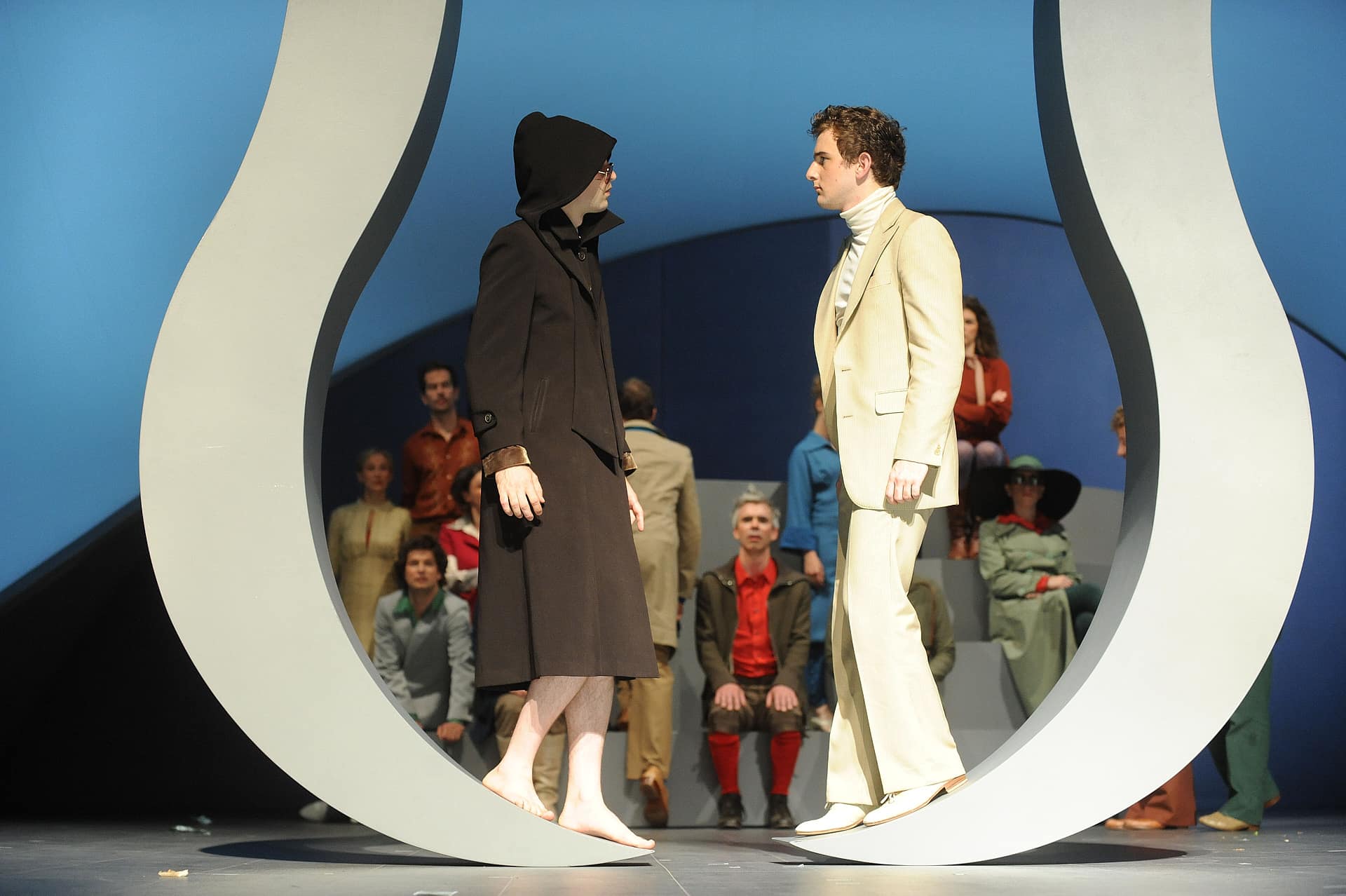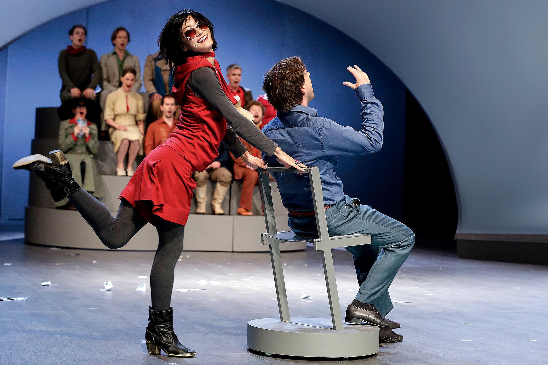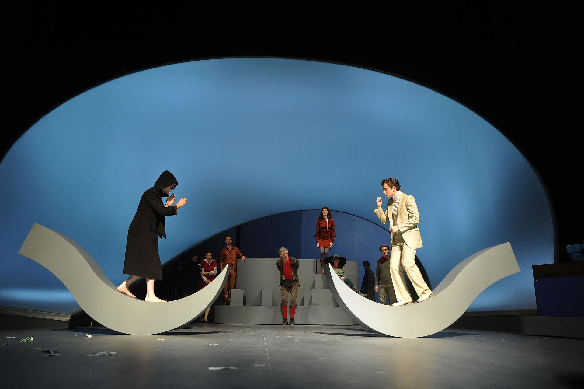 „Bitterböse Anspielungen treffen auf Despektierliches, Slapstick auf Freud, Opernparodie auf auf Sozialsatire. Nicht nur über die Beziehung des Menschen zu einem höheren Wesen wie Gott wird erzählt, sondern auch über jene zwischen den Erdenbewohnern. Bewegend sind gerade Szenen wie ein beinahe klassisches Pas-de-deux oder fast durchchoreographierte Ensembles eben jene Momente, in denen Musik und Aktion fast vollends ineinander aufgehen…“
