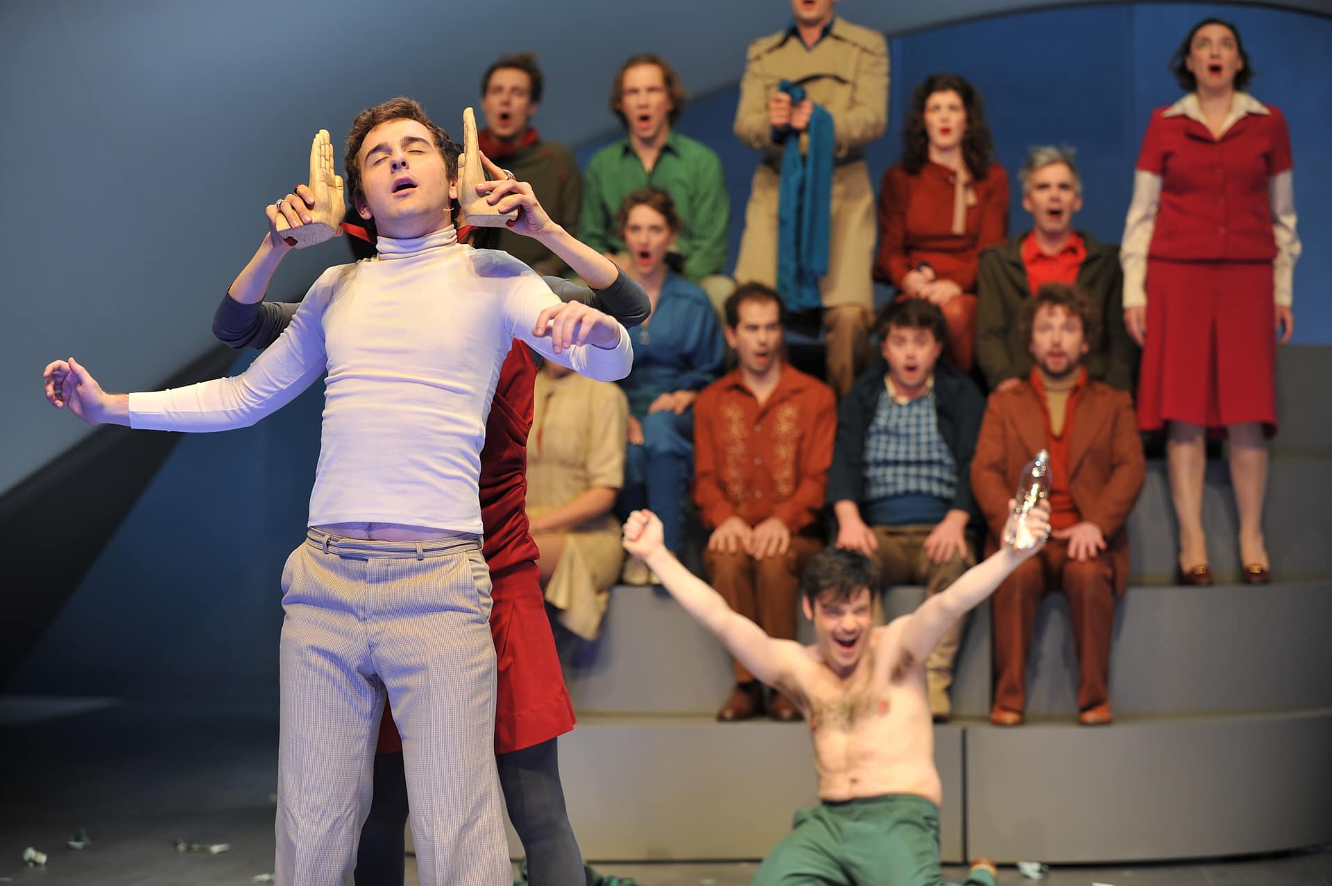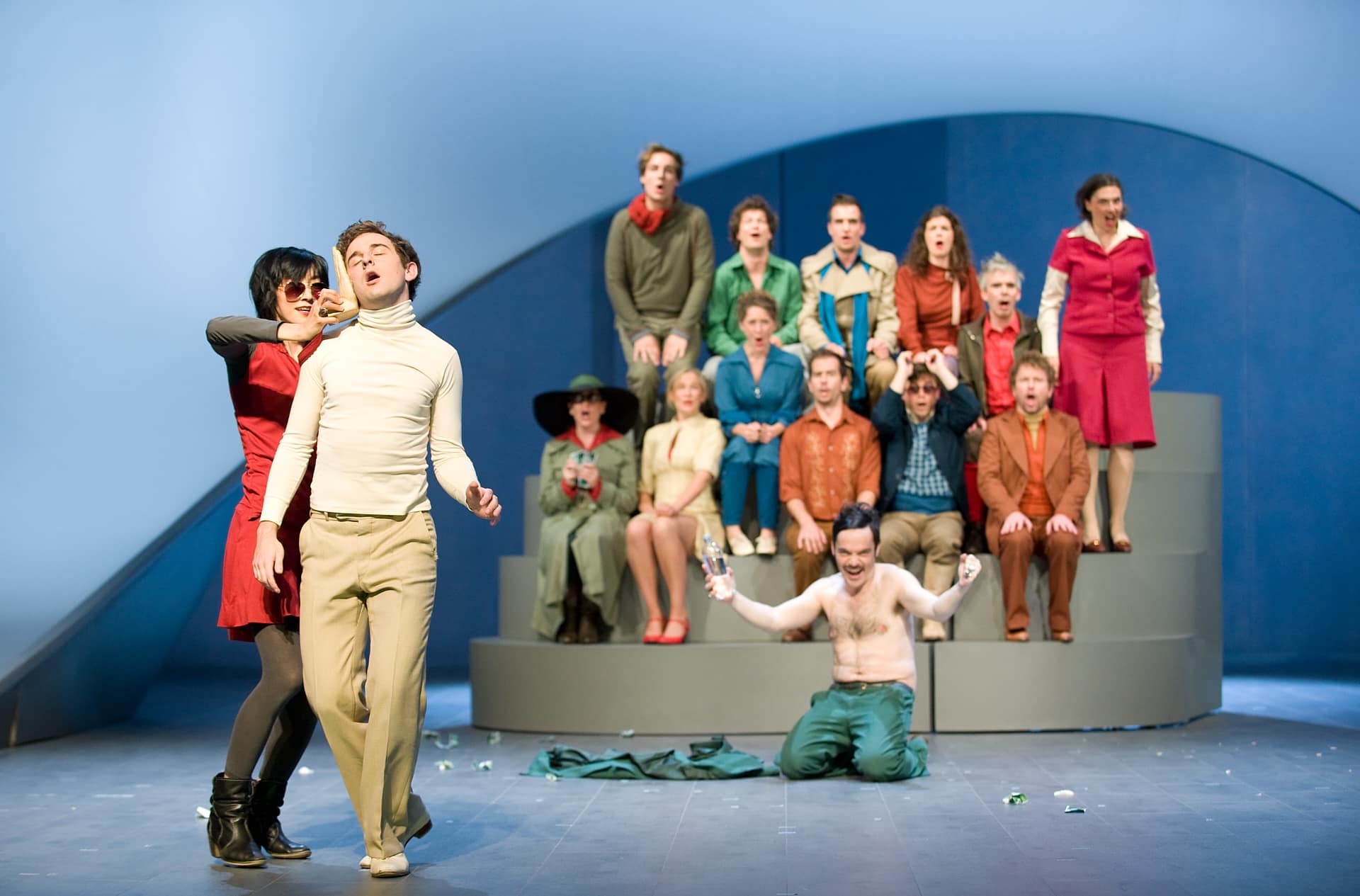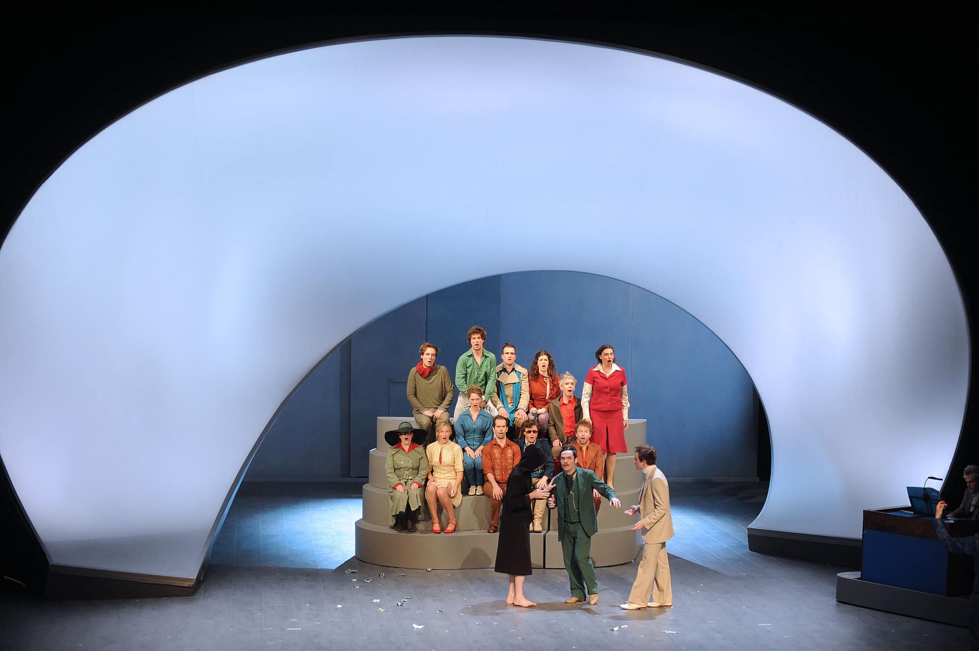 „Bitterböse Anspielungen treffen auf Despektierliches, Slapstick auf Freud, Opernparodie auf auf Sozialsatire. Nicht nur über die Beziehung des Menschen zu einem höheren Wesen wie Gott wird erzählt, sondern auch über jene zwischen den Erdenbewohnern. Bewegend sind gerade Szenen wie ein beinahe klassisches Pas-de-deux oder fast durchchoreographierte Ensembles eben jene Momente, in denen Musik und Aktion fast vollends ineinander aufgehen…“
