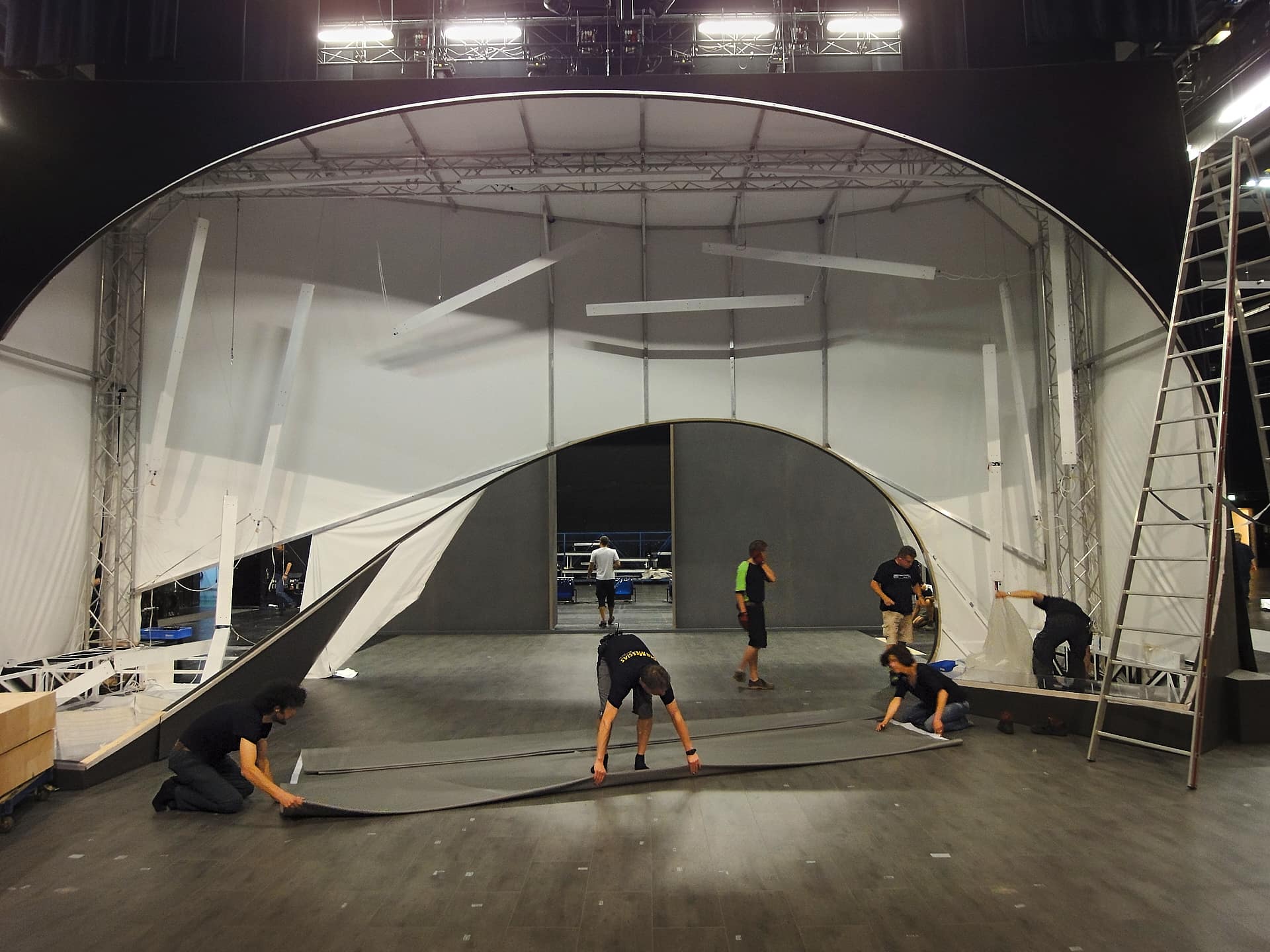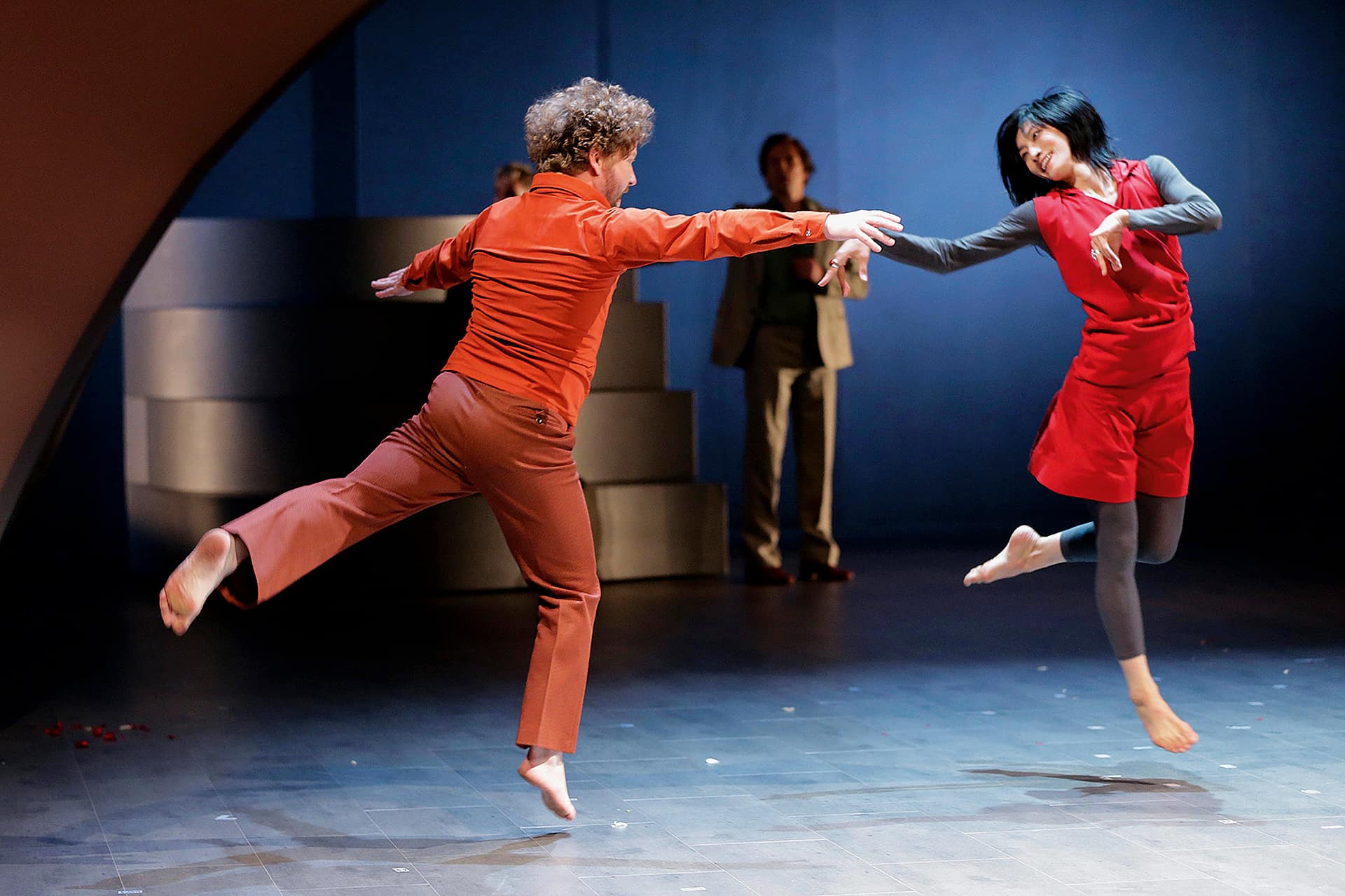 34 Jahre lebte der Opernkomponist Gioachino Rossini von einer stattlichen Rente aus seinem Vertrag mit dem französischen König. Abgesetzt von Liberalen des 19. Jahrhunderts, die Rossini viel Zeit gaben, das Geld für Trüffel auszugeben und, glaubt man den Brüdern Goncourt, «junge Mädchen dazu zu bringen, sich bis zur Taille auszuziehen und ihn seine Hände lüstern über ihren Oberkörper streifen zu lassen, und dabei ließ er sie an seinem kleinen Finger lutschen». Ein Sünder, der hundert «Péchés de vieillesse» komponierte, darunter die bekannteste «Alterssünde», die «Petite messe solennelle», mit denkwürdiger Widmung: «Lieber Gott, habe ich wirklich geistliche Musik geschrieben oder nur dummes Zeug wie sonst auch? Du weißt sehr wohl, dass ich für die Opera buffa geschaffen bin. Das verlangt keine großen Fähigkeiten, dazu reicht im Grunde ein bisschen Gefühl. Also, Ehre sei Gott, und bitte lass mich ins Paradies kommen.» «So mag ein religiöser Mensch wie der zum Kind werden», denkt der Schriftsteller Julian Barnes. Die choreografierende Regisseurin Nicola Hümpel denkt: Er ist noch heute da, der Kinderglaube vom guten Leben, selbst wenn Gott darin keine besondere Rolle spielt. Ihr Bühnenbildner Oliver Proske fragt: Wie sieht es aus, das Paradies? In Erfurt zum Kunstfest «pèlerinages» überragt die Bühne eine Wolkenbrücke. Darunter lässt sich für den apostolischen Chor aus zwölf Sängern eine fahrbare Tribüne so auseinandernehmen, dass ein orientalisches Tor entsteht, das an eine Sicherheitsschleuse am Flughafen erinnert. Noch da oben hat man Angst vor Attentätern. Ein orientalisches Tor ist rund. Legt man dessen Hälften auf den Boden, entstehen zwei Wippen. Auf denen schaukeln Gott und sein Zweifler, ein gewisser Benedikt (wie der Papst) sich in den Witz hinein. Wer zum Teufel ist Gott? Der Teufel ist eine Tänzerin, Yui Kawaguchi. Gott dagegen liebt das Lieben. Sein Gegenspieler zweifelt: «Woher soll Gott nur die geringste Ahnung von Liebe haben?» Single ist er, nicht mal geschieden. Also schlägt Yui Kawaguchi die chinesische Klangschale, bis die Kirche leer ist. Rossinis Glaube spiegelt sich im exzellent choreografierten Chor und in den brünstigen Sätzen Kyrie, Gloria, Credo und O salutaris hostia, begleitet von zwei Klavieren und einem Harmonium, inbrünstig dirigiert von Nicholas Jenkins. Das ist frech, vor allem: körperlich. Nichts ist unfassbarer als der Teufel, den Yui Kawaguchi als Kobold von unglaublicher Beweglichkeit verkörpert. Ihr hält – die Überraschung – der Countertenor Philipp Caspari tänzerisch so tapfer stand, als fiele nicht nur die Allmacht Gottes, sondern auch die der Oper. Für Nicola Hümpel, wie für Sasha Waltz oder Heike Hennig, gibt es kein Verbot, demzufolge ein Oratorium nicht getanzt werden dürfe. Der Körper, von Kirchen geächtet, von Rossini bis zur Depression erlitten, feiert den «betrunkenen Bach», um den Aberglauben vom Seelischen, der Stimme, zum Teufel zu schicken. Zum Tanz.