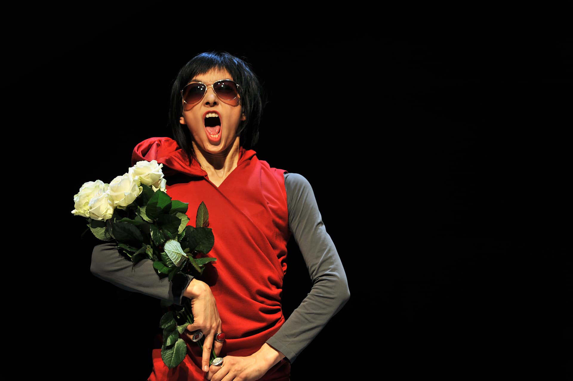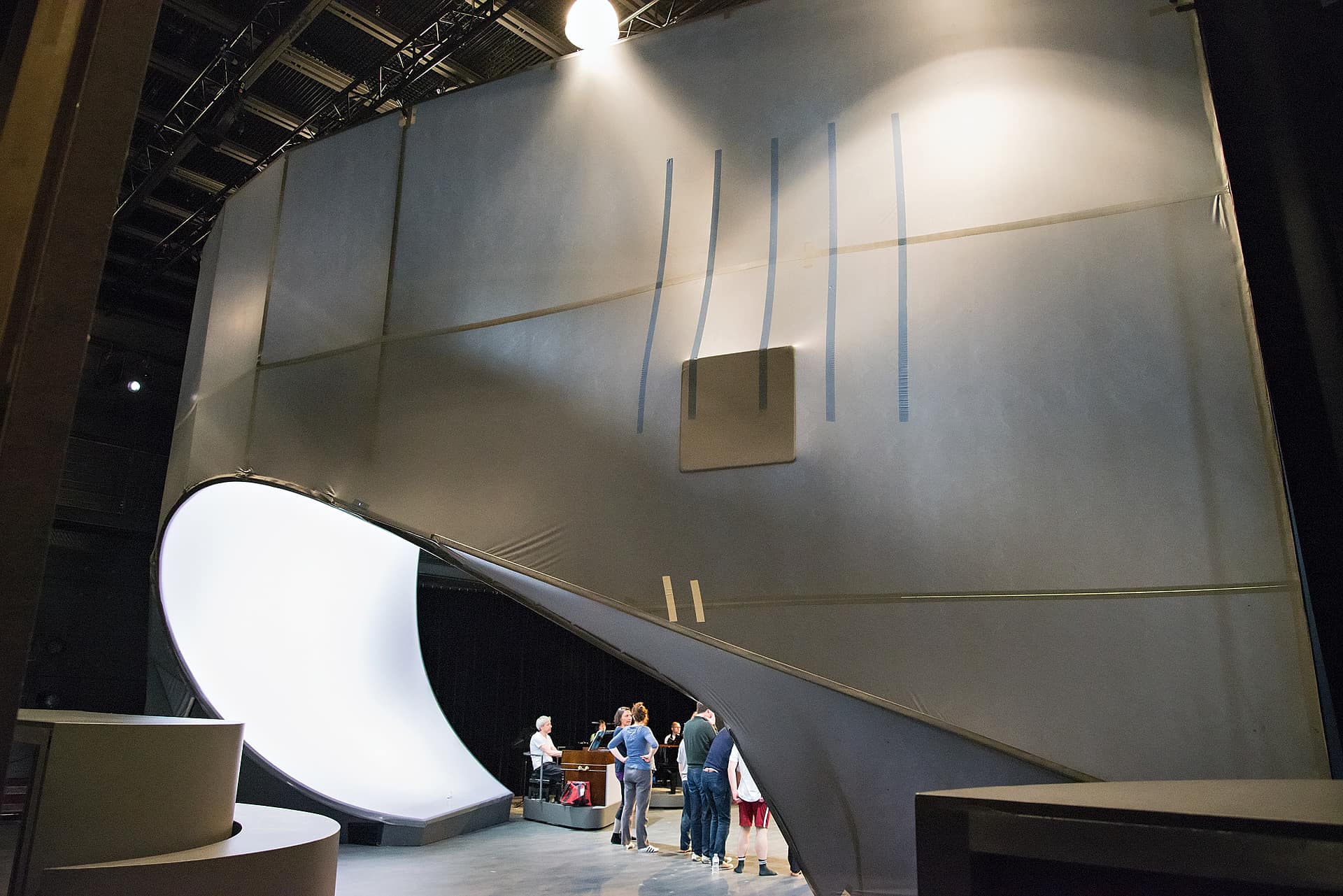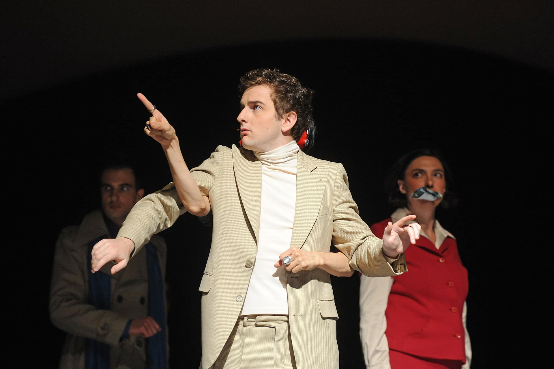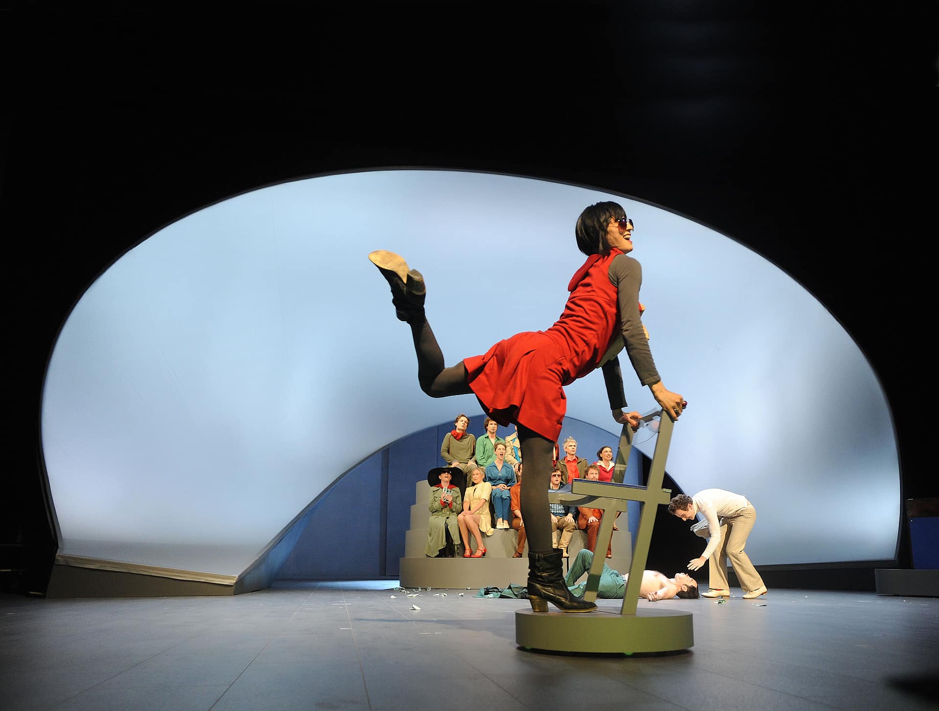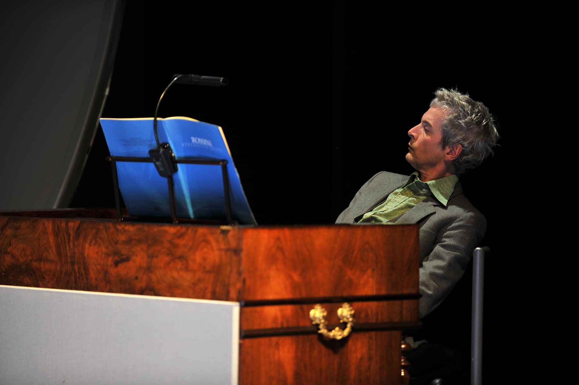 Dass Sänger heute in allen Lebenslagen singen, spielen und tanzen können, ist man gewohnt. Dass aber eine Pianistin selbst dann weiterspielt, wenn ihr ein Schauspieler die Haare zerwühlt, und dass sich ein Dirigent gleichfalls als leidenschaftlicher Schauspieler entpuppt, ist denn doch ungewöhnlich. Bereits zum dritten Mal ist die Berliner Truppe Nico and the Navigators im Rahmen von Kunst aus der Zeit (KAZ) zu Gast bei den Bregenzer Festspielen. Ihre vielschichtige Annäherung an Gioachino Rossini und seine „Petite Messe Solennelle“ schlug das Publikum an zwei Abenden auf der Werkstattbühne in Bann. Da gibt es einen sanft säuselnden Mann im braunen Kapuzenmantel mit buddhistisch angehauchten Empfehlungen und einen spöttischen Zweifler namens Benedikt - sie reden in einem skurrilen englisch-deutschen Dialog aneinander vorbei. Da gibt es vielerlei Anspielungen, Bildzitate und Querverweisungen, etwa wenn die Tänzerin Yui Kawaguchi mit ihrer begnadeten Körpersprache zwei geschnizte „betende Hände“ wie Engelsflügel wippen lässt. Ein variabel eingesetztes Bühnenbildteil, bald Chorpodium, bald Altar, Gefängnis oder Beichtstuhl, lässt sich zerlegen zur Psychocouch oder zur Balancierwippe. Zwölf spielfreudige Sängerinnen und Sänger vereinen sich zu einem homogonen Chor, aus dem die Solostimmen (Laura Mitchell, Ulrike Mayer, Milos Bulajic und Pauls Putnins) hervortreten.