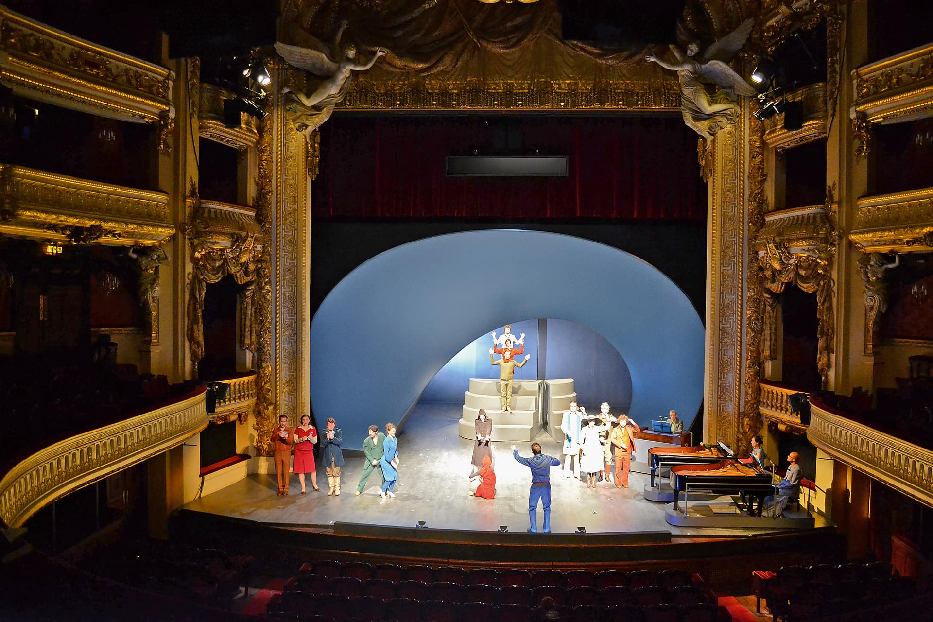 „es wird nicht nur witzig parliert bei diesem kurzweilig vertanzten und besungenen Bildertheater, sondern auch mit augenzwinkernder Selbstironie auf unsere Gegenwart geblickt…“