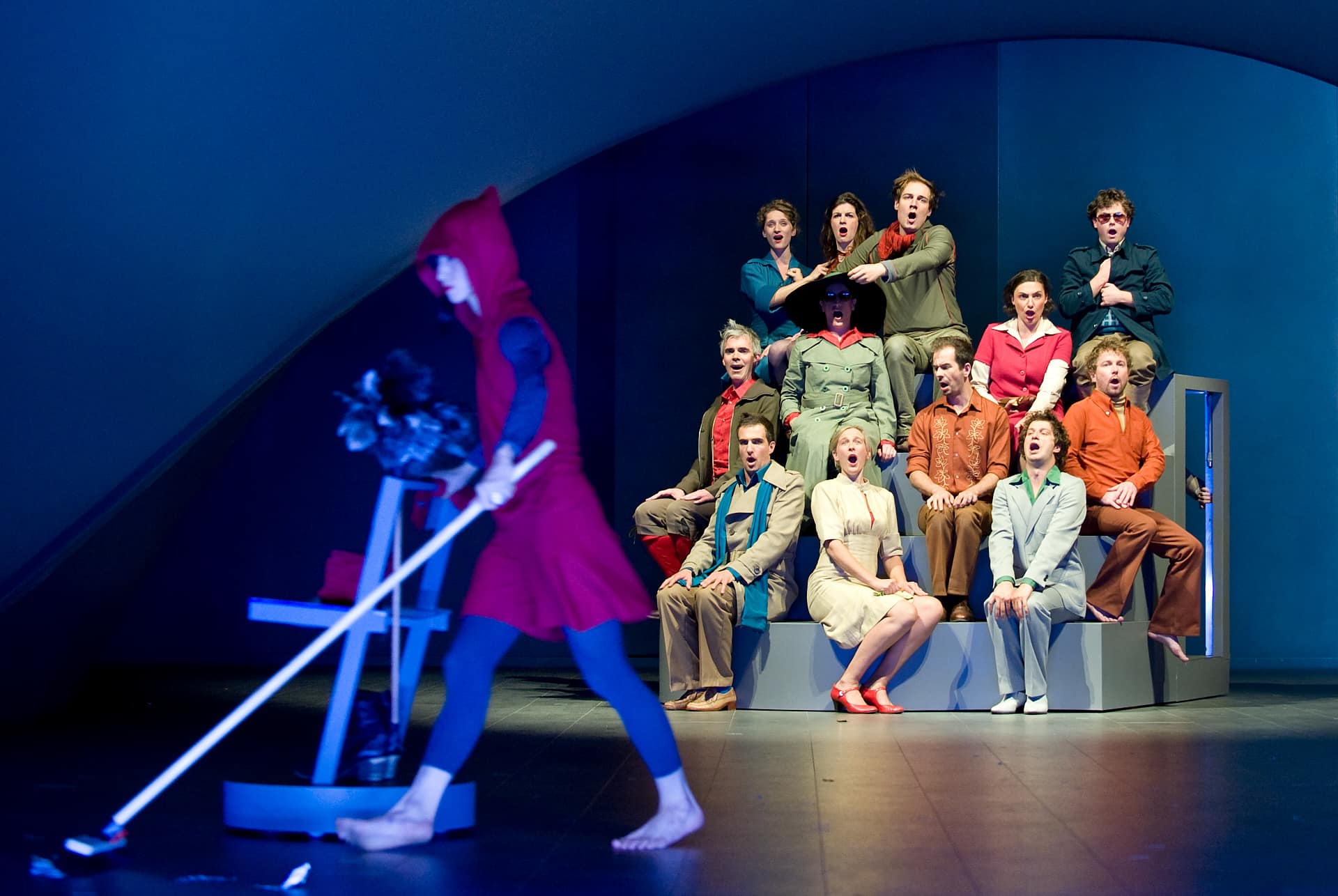 …Es wird nicht nur witzig parliert bei diesem kurzweilig vertanzten und besungenen Bildertheater, sondern auch mit augenzwinkernder Selbstironie auf unsere Gegenwart geblickt. Rossinis Musik lieferte den Raum, den die Truppe für Glaubensbekenntnis zur Kraft der Musik und des Tanzes brauchte. Sie fühlten sich darin so wohl, dass sie das Publikum der Erfurter Oper damit ansteckten…