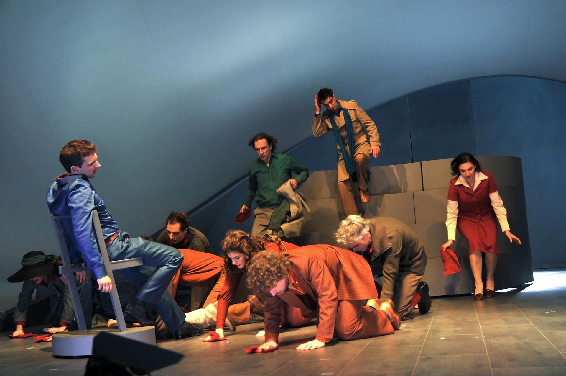 Wie die Ganzkörperpoeten von Nico and the Navigators Rossinis "Petite messe solennelle» zu einer Performance machen «Glaubensbekenntnisse im 21. Jahrhundert» nennt die Berliner Off-Theatertruppe Nico and the Navigators ihre neue, vom Kunstfest Weimar in Auftrag gegebene Kreation - ein «Oratorium als Bildertheater» nach Gioachino Rossinis «Petite Messe solennelle». Die Mixtur aus Gesang, Schauspiel, Tanz, Slapstick und Tragikomödiantik kann selbst ein lateinisch-katholisches Messritual musiktheatralisch in Schwung versetzen, so geschehen bei der Uraufführung am Theater Erfurt. Die Produktion wird Mitte November im Berliner Radialsystem gezeigt, im April und Juni 2012 in Dijon, Paris und Bregenz. Zwei pausenlose Stunden lang «navigiert» die Performance-Gruppe mit der Ausdruckswucht eines exzessiven Körper-Bilder-Theaters durch Rossinis Messe-Stationen. Vor dreizehn Jahren begannen Nicola Hümpel und Oliver Proske, Gründer des Kollektivs von «Ganzkörperpoeten», ihre Ästhetik zu entwickeln - ausgehend vom Bauhaus Dessau. Erste große Resonanz erhielten sie in Berlins Sophiensälen mit dem Zyklus «Menschenbilder». Nach Performances zu Schubert und Händel sind sie bei jener Messe des alten Maestro Rossini gelandet, die dieser 34 Jahre nach seiner letzten Oper komponierte. Melodische Inbrunst und Eleganz werden darin nonchalant mit dem Augenzwinkern simpler Begleitfiguren an zwei Klavieren serviert. Dazu zimmern sich Nico and the Navigators eine Art Theatertheologie: Bilderstreitszenen um Glaube, Irr- und Aberglaube, um das Zweifels- und Zwiespaltgebot, Fragen nach Religion, Ritual, Humanität, Sehnsucht und seelische Gewalt in christlicher Utopie - Witz inbegriffen. Solche „Glaubensbekenntnisse“ wollen nichts beantworten, nur Fragen stellen. Konzept und Regie Nicola Hümpels schaffen auf der durch Requisiten definierten Bühne Oliver Proskes einen Reigen scheinbar alltäglicher Menschen in kunstvoll stilisierten oder trashig frech ausufernden Bildern und Sketchen, die die Messtexte vom «Kyrie eleison» bis zum «Agnus Dei» nicht verdoppeln und aktualisieren, sondern kontrapunktieren, assoziativ zerfasern. Bewegung dominiert alles: Vier Gesangsolisten und acht Chorsänger sind ständig unterwegs, sogar die drei Instrumente, zwei Klaviere (SooJin AnJou, David Zobel) und das Harmonium (Jan Gerdes) werden auf der Bühne hin- und hergefahren. Selbst der agile britische Dirigent Nicholas Jenkins, früher Assistent Marc Minkowskis, wechselt die Standorte, lässt sich in die «Handlung») hineinziehen. Zum Prinzip der Truppe gehört das Improvisieren, trainiert in Übungen und Workshops: Gesangsstimme, Rollenspiel, Individualität sind gleich wichtig. Oft schieben sich zwischen Rossinis Messteile Abschnitte, in denen die Figuren als Instanzen von Lebens- und Glaubenssituationen agieren: ein Priester, Psychiater, Schamane, ein Rationalist oder Wissenschaftler, ein heruntergekommener Mafioso, eine seraphische Engel-Figur in leuchtendem Rot (die mit gelenkigen Tanzschritten bizarr wirbelnde Yui Kawaguchi): Sie alle sind Sinnbilder der Gespaltenheit menschlicher Existenz, der Ambivalenz, der Gefühlsabgründe. Es ist die choreografische Leichtigkeit in der Fülle ernster Rätselbilder, die die Produktion spannungsvoll und kurzweilig macht - und bei aller ästhetischen Leidenschaft unterhaltsam. Und es ist Rossinis fließende, kunstvolle, ehrliche, scheinbar heitere Musik, die diese Sinnsuche in einem aufgefächerten Bilderbogen rhythmisiert. Religionsphilosophie in Bewegung, Tanz auf den Projektionsflächen des Agnostizismus, Imaginationen der Verstörung im perfekten Timing.