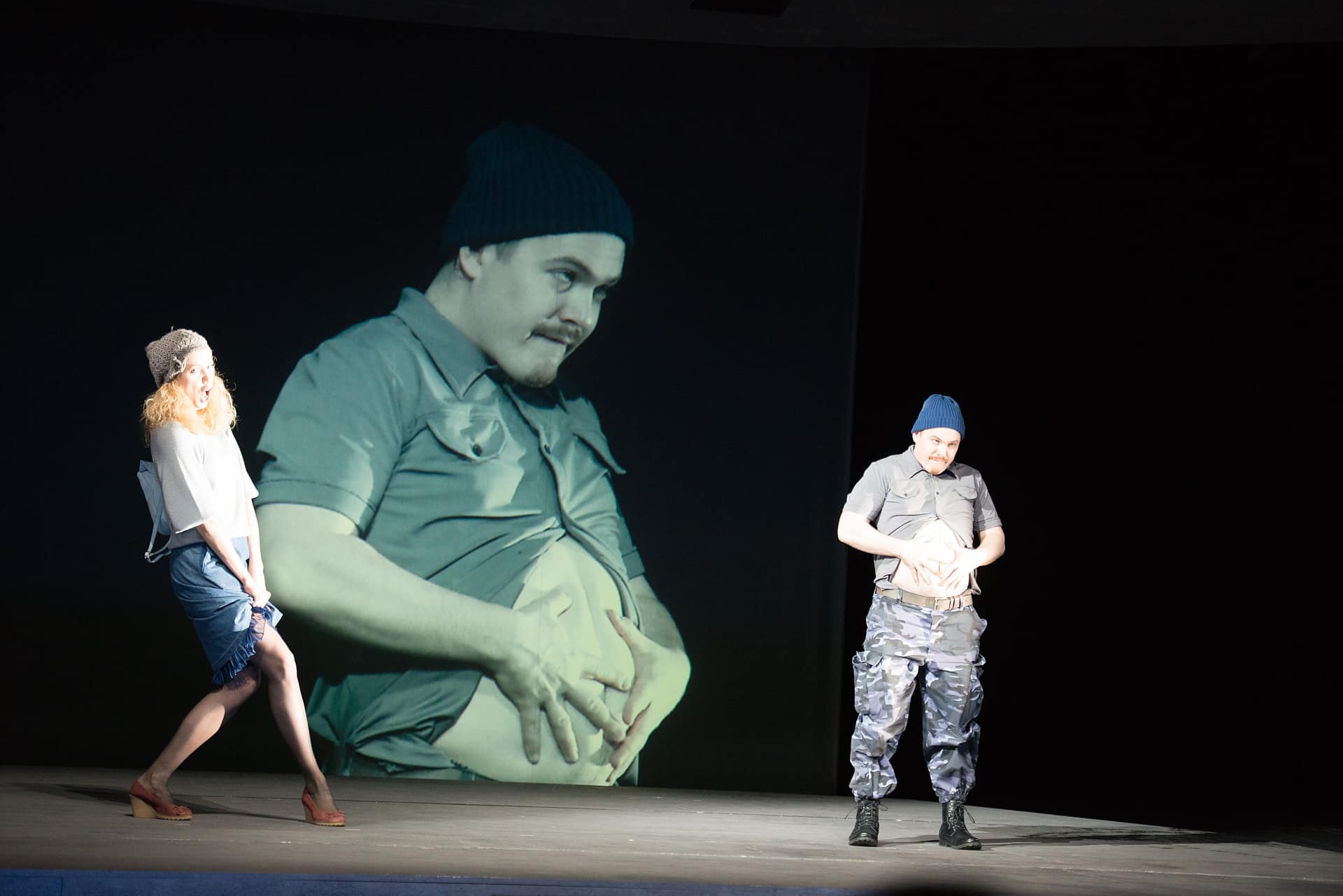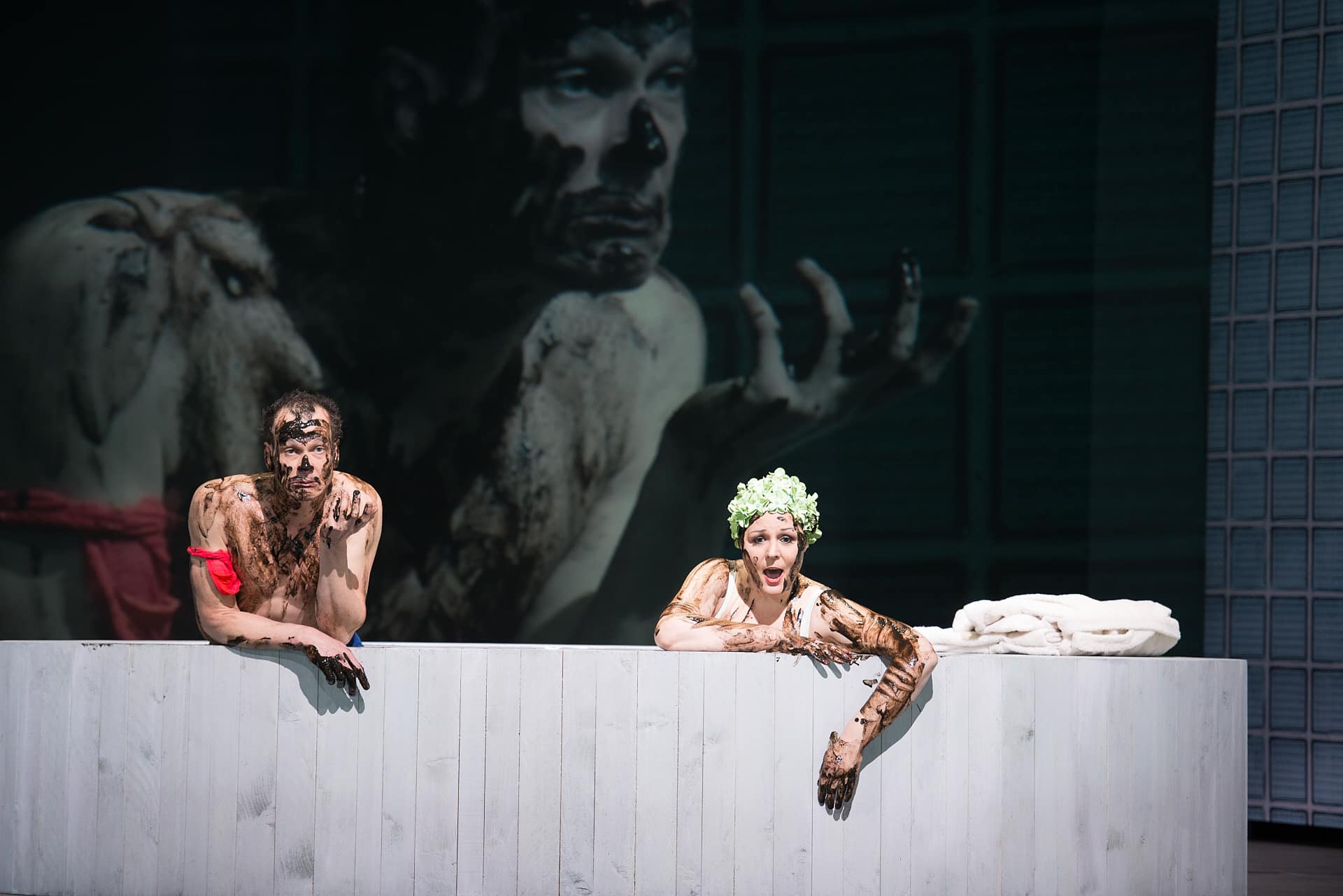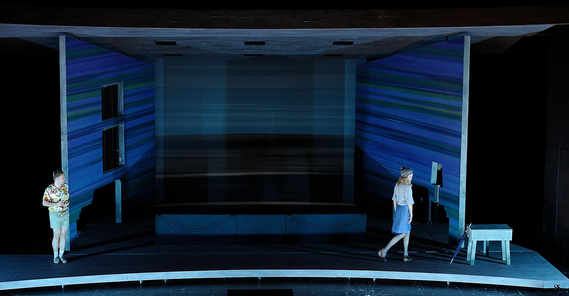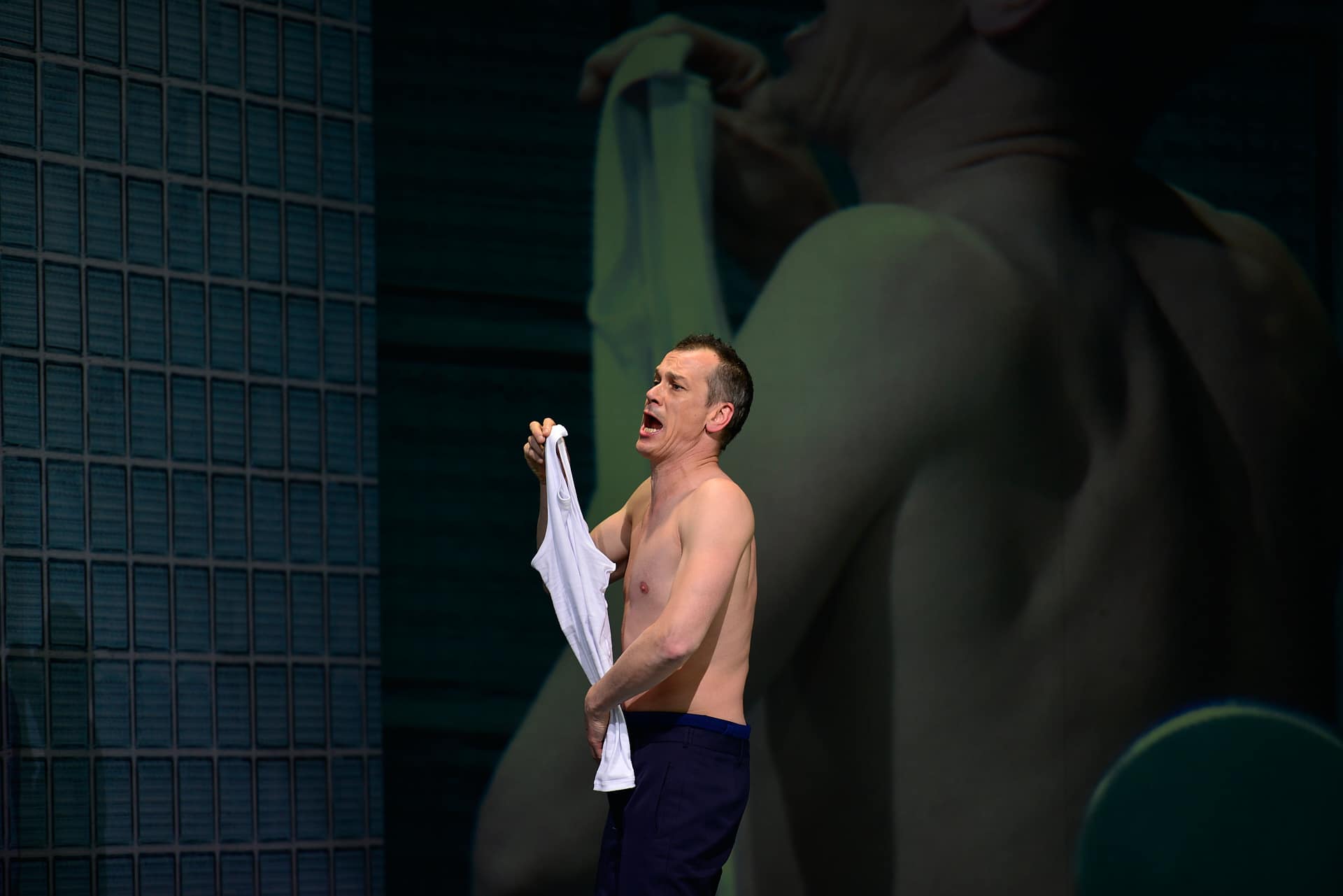 …zugängliche, lichte, immer wieder auch ironische Musik, die blitzschnell umschaltet zwischen Pathos und Lakonie…. Die Regisseurin Nicola Hümpel vom Berliner Musiktheaterensemble „Nico and the Navigators“ greift diese musikalische Ironie auch szenisch auf, was dem umjubelten Premierenabend eine Leichtigkeit verleiht und mehrfach lautes Lachen im Publikum provoziert. Dass sich neben der Drehbühne auch musikalisch manches im Kreis dreht und die eine oder andere Szene Längen hat, ist der Vorlage geschuldet. Handwerklich ist diese Musiktheaterproduktion perfekt gearbeitet. Und auch im Orchestergraben herrscht Präzision.