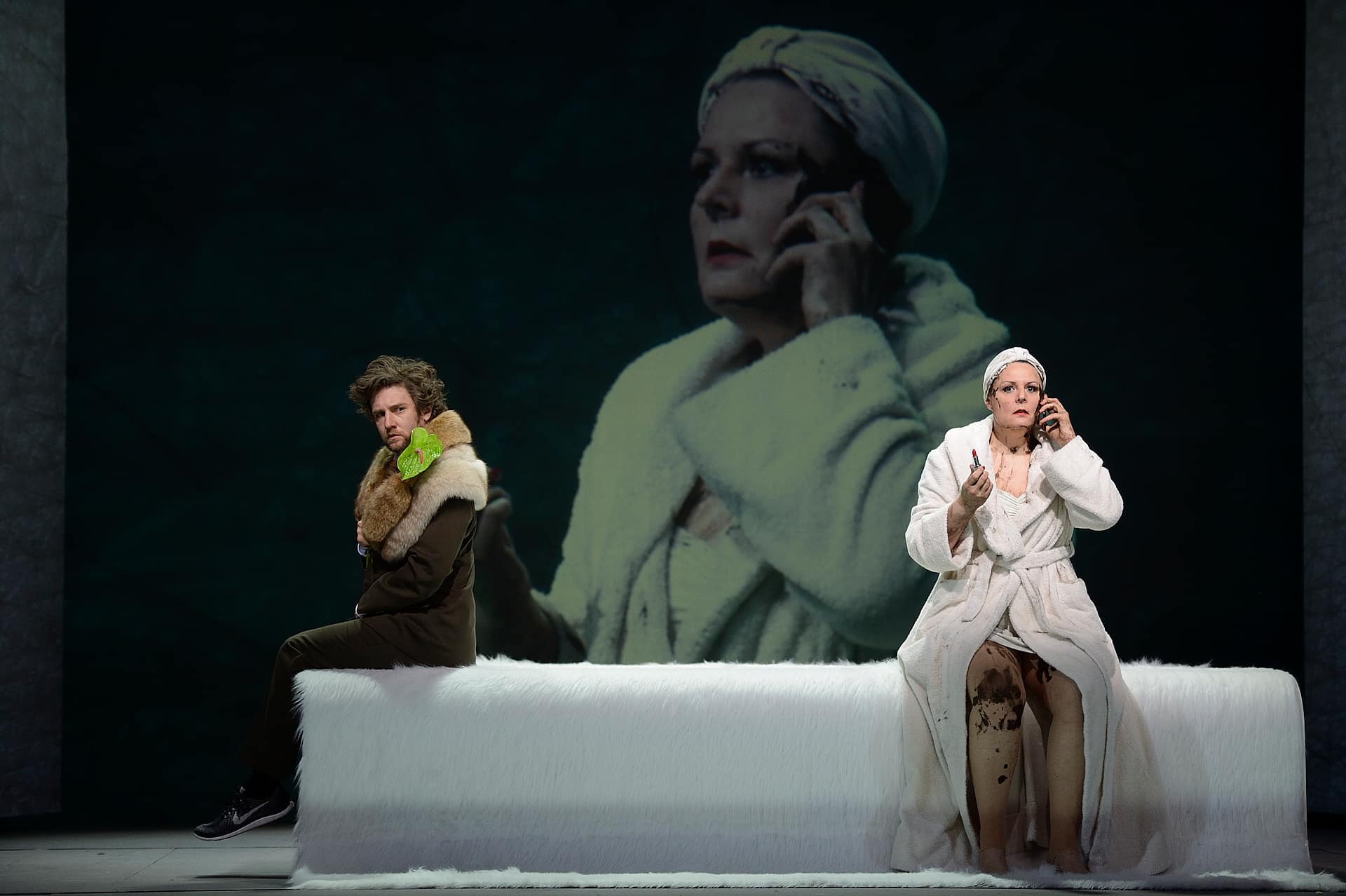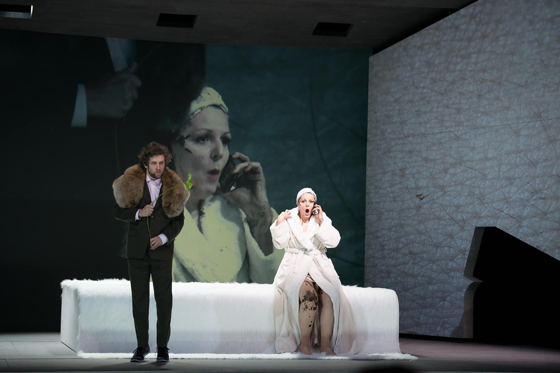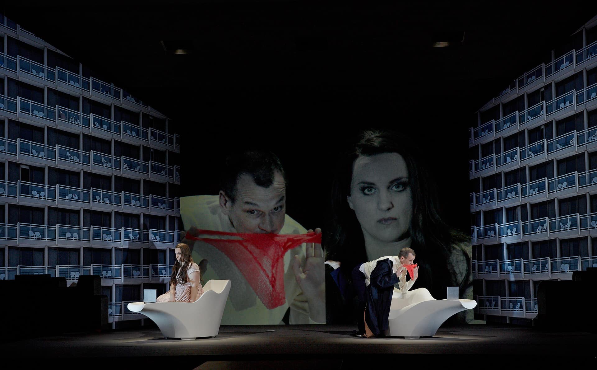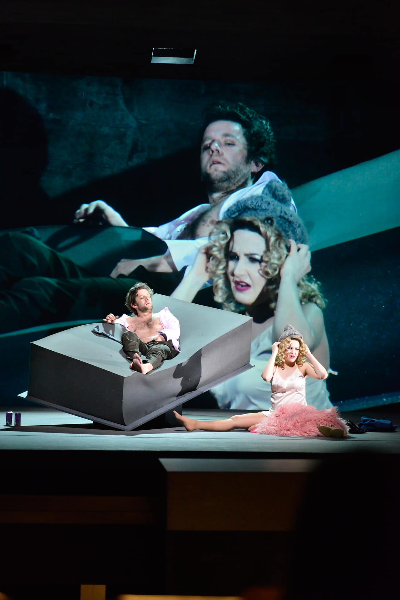 Die Exzellenz des (maßgeblich von der Operndirektorin Eva Kleinitz gepflegten) Stuttgarter Sänger-Ensembles war hier schon deshalb besonders deutlich zu spüren, weil die Regisseurin Nicola Hümpel mit jedem einzelnen Darsteller feine Charakterstudien erarbeitete; dass diese bis hinein in kleinste Zuckungen der Mimik reichten, fing eine Kamera ein, und die ineinander übergehenden Räume auf Oliver Proskes Bühne ergänzten das turbulent-ironische Spiel – ein Abend für Augen, auch schön.