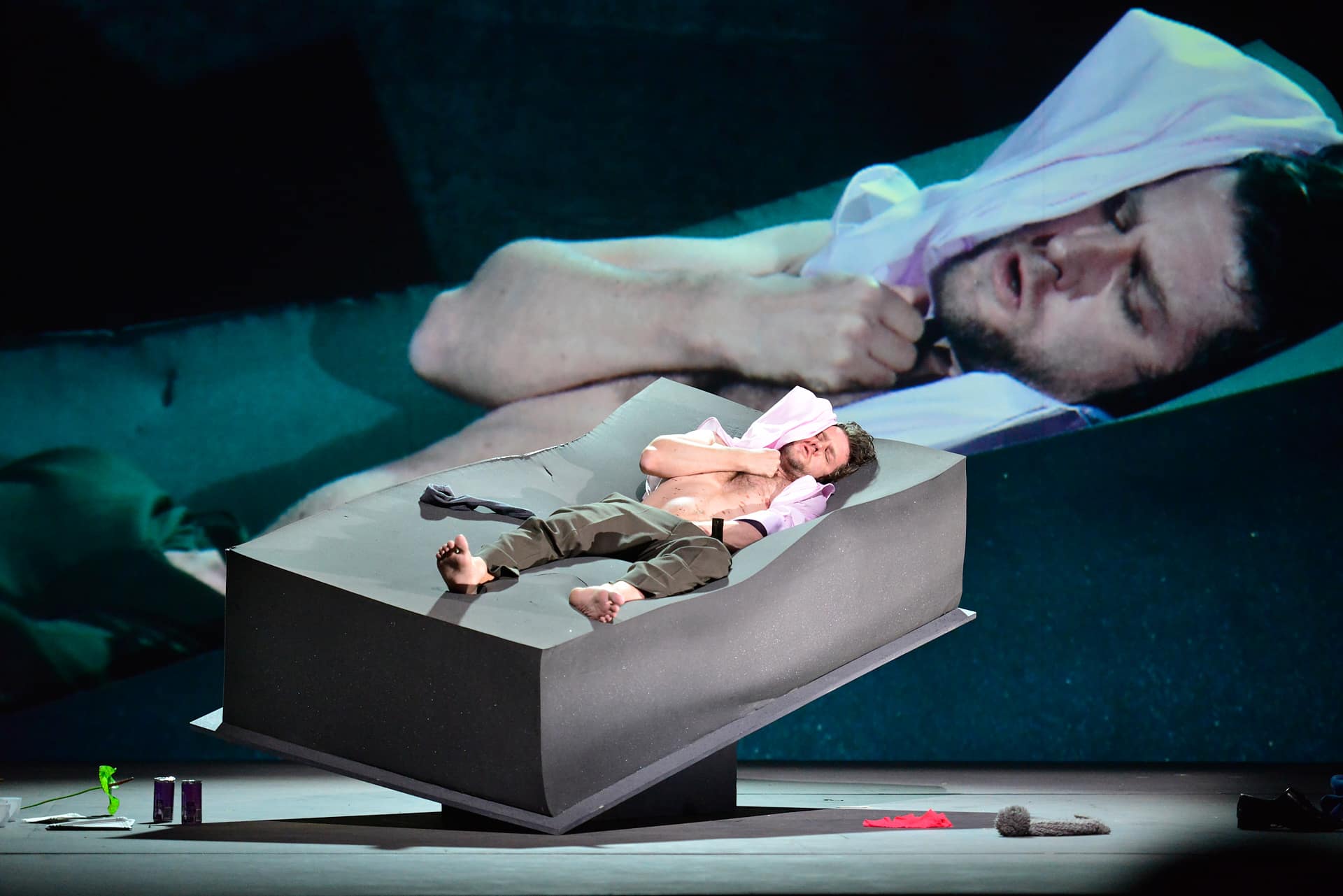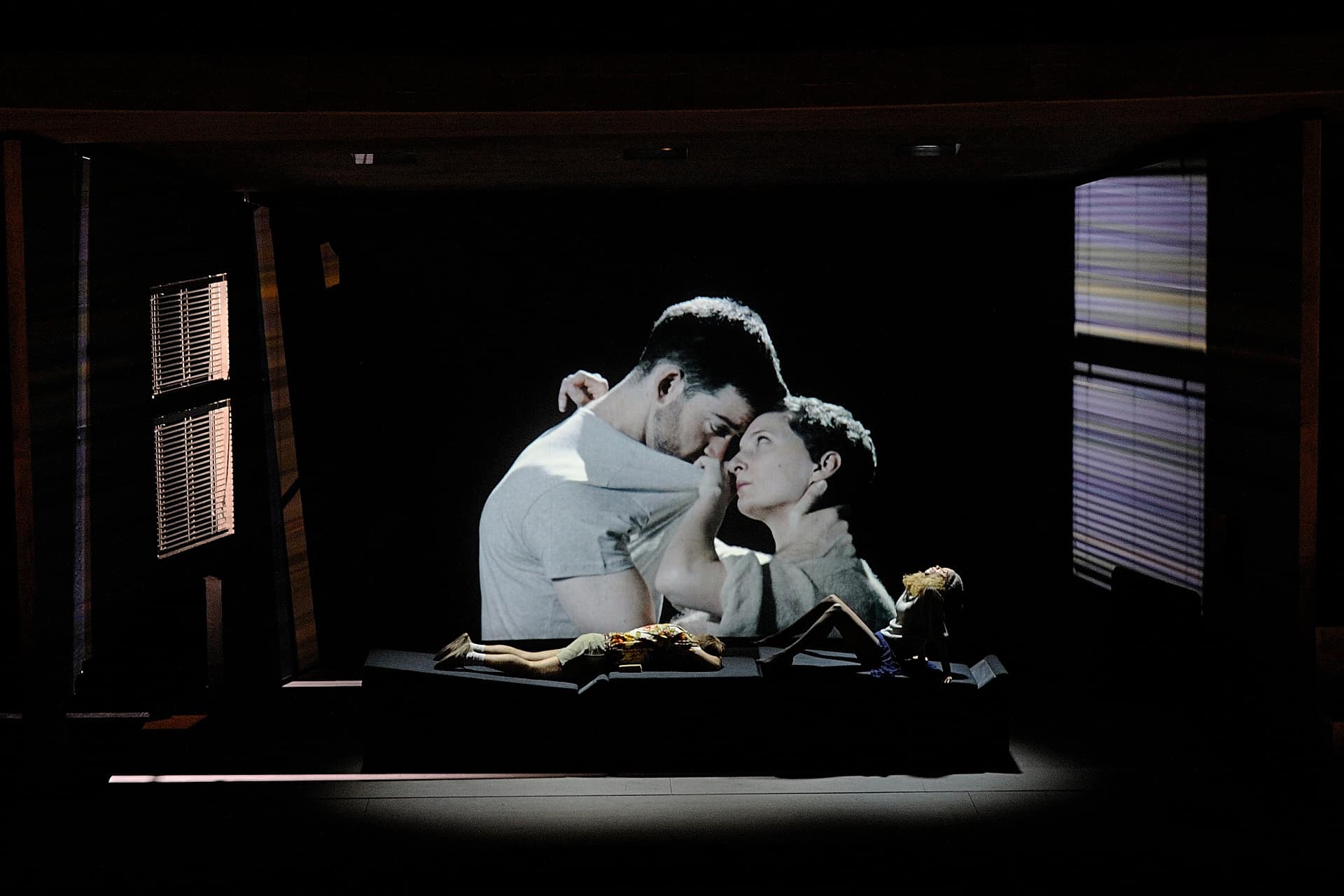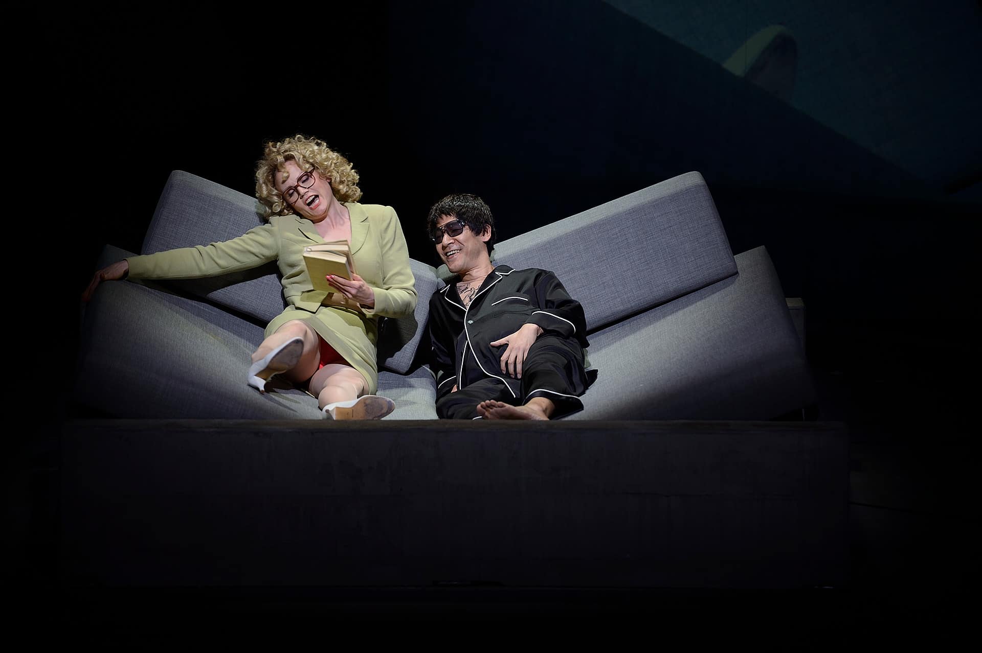 Der belgische Komponist Philippe Boesmans schrieb zudem durchaus Musik auch für die Zeit zwischen dem Davor und dem Danach, um die es bei Schnitzler geht…Ungemein liebevoll löst das in Stuttgart Regisseurin Nicola Hümpel. Menschen versinken in Matratzen, flutschen vom selbsttätigen Bett, verschlingen sich extraordinär, hantieren wie von ungefähr mit phallisch verformten Sofakissen, rollen sich im Moorbad, und sie kauen tatsächlich auch auf einem Wiener Würstchen herum.