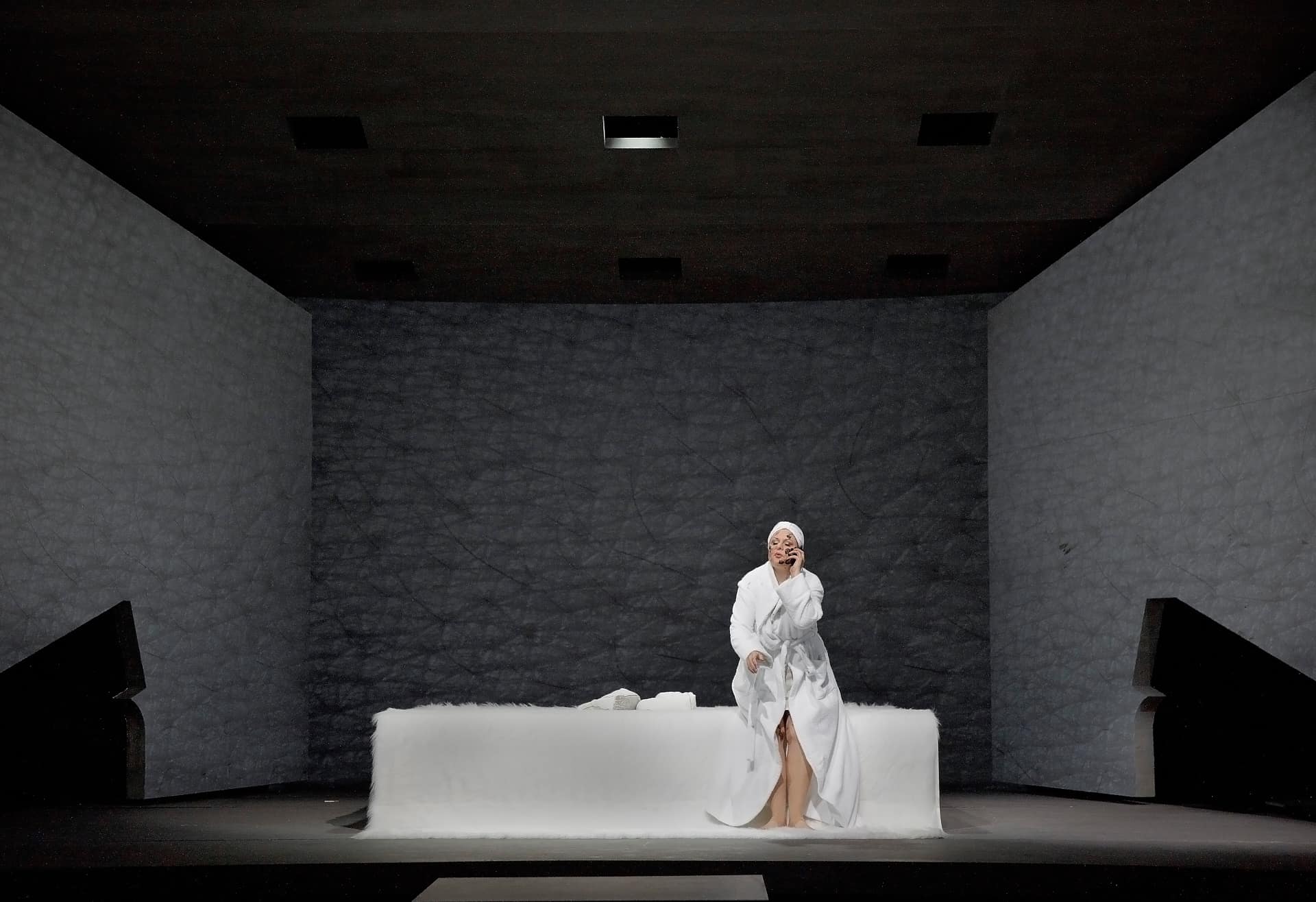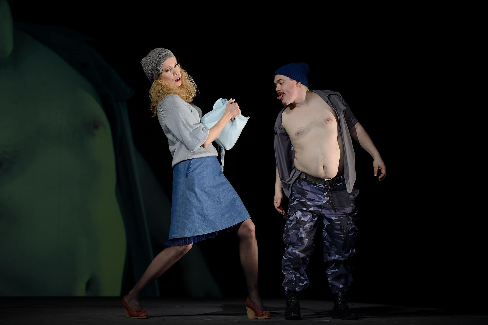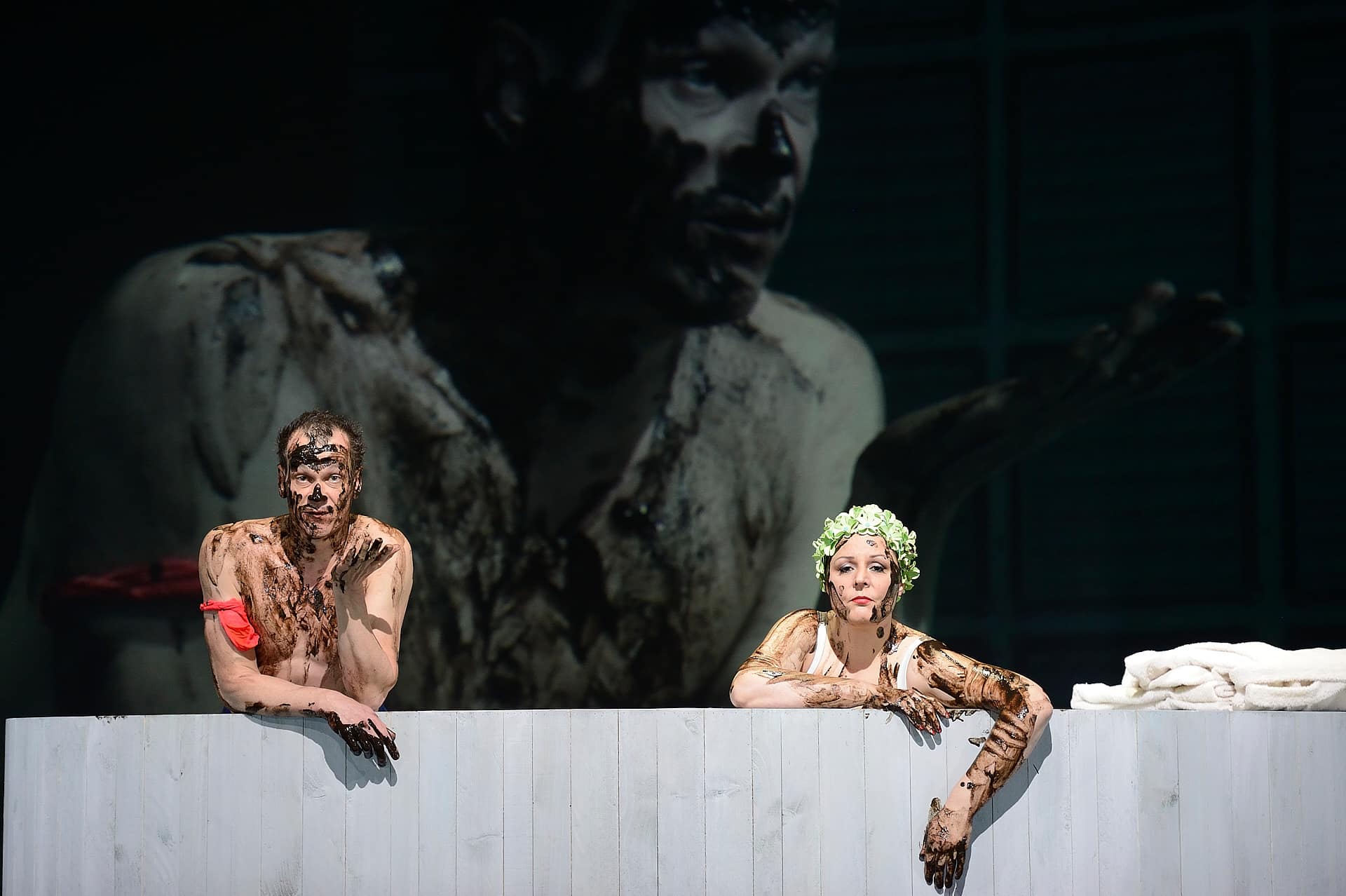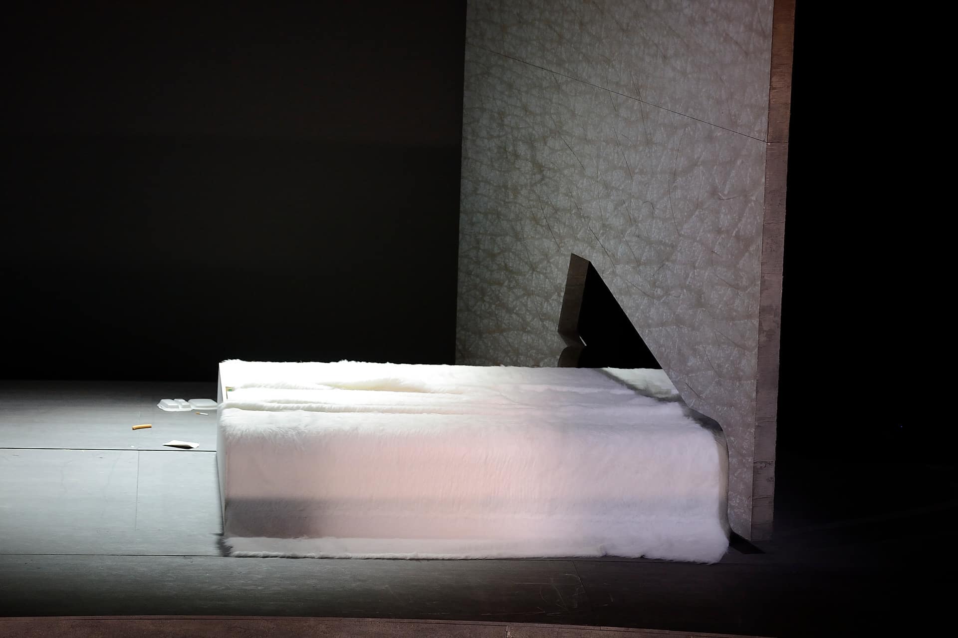 Der belgische Komponist Philippe Boesmans schrieb zudem durchaus Musik auch für die Zeit zwischen dem Davor und dem Danach, um die es bei Schnitzler geht…Ungemein liebevoll löst das in Stuttgart Regisseurin Nicola Hümpel. Menschen versinken in Matratzen, flutschen vom selbsttätigen Bett, verschlingen sich extraordinär, hantieren wie von ungefähr mit phallisch verformten Sofakissen, rollen sich im Moorbad, und sie kauen tatsächlich auch auf einem Wiener Würstchen herum.