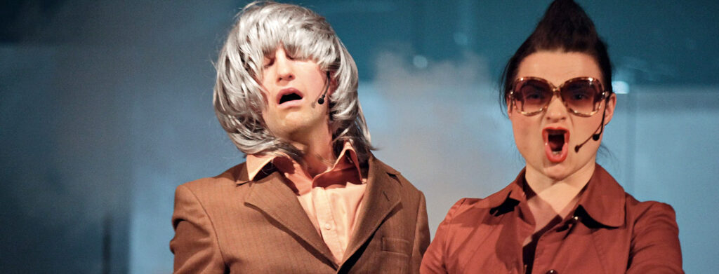 Nicola Hümpel utilizes the challenge of translation and has the characters exchange bilingual dialogues. Rather than working with surtitles she allows the different figures to use both languages and finds playful ways to create German versions of the English originals.