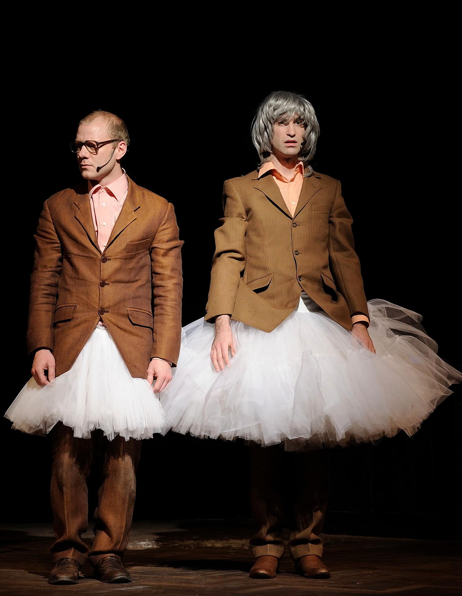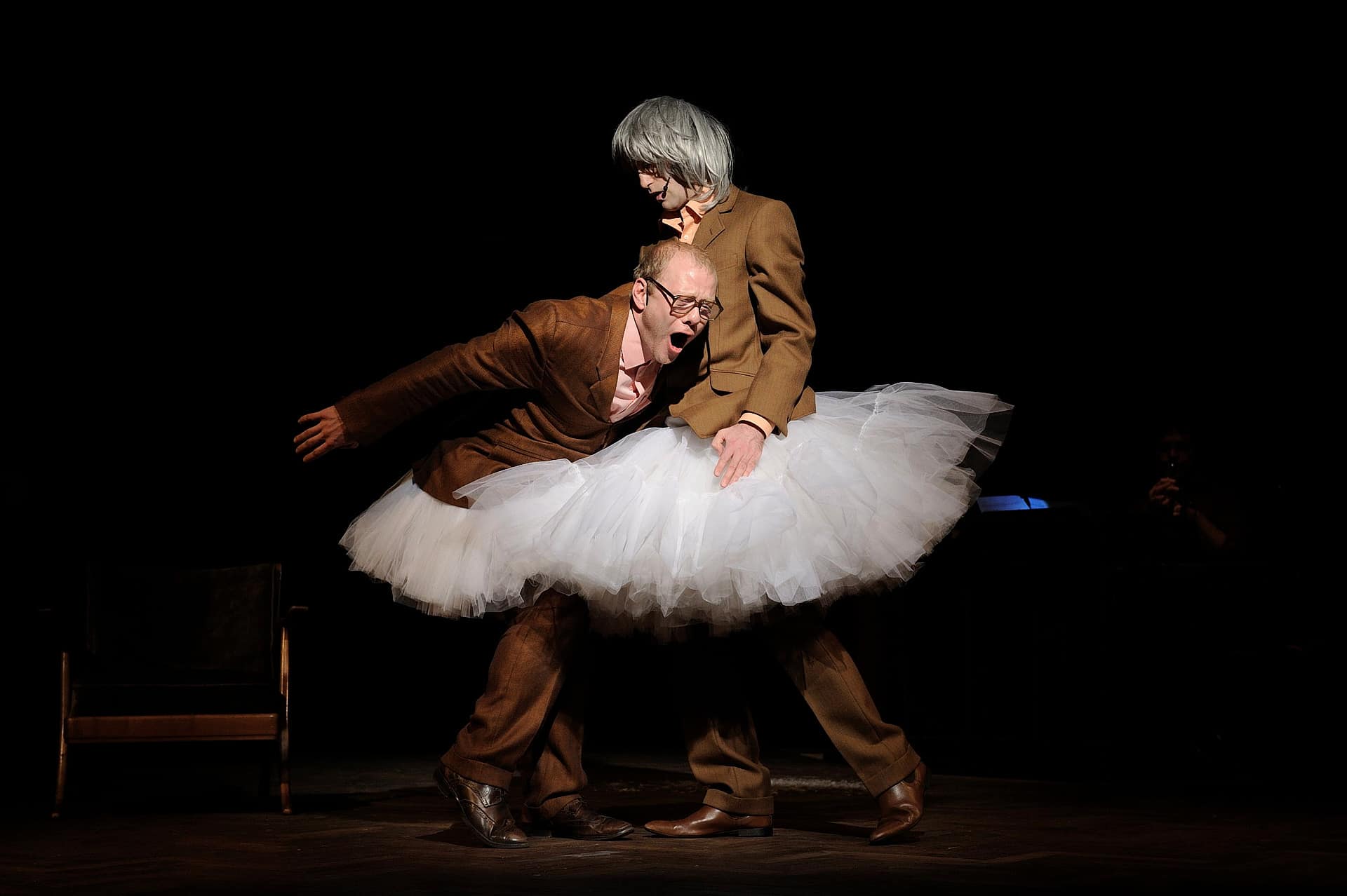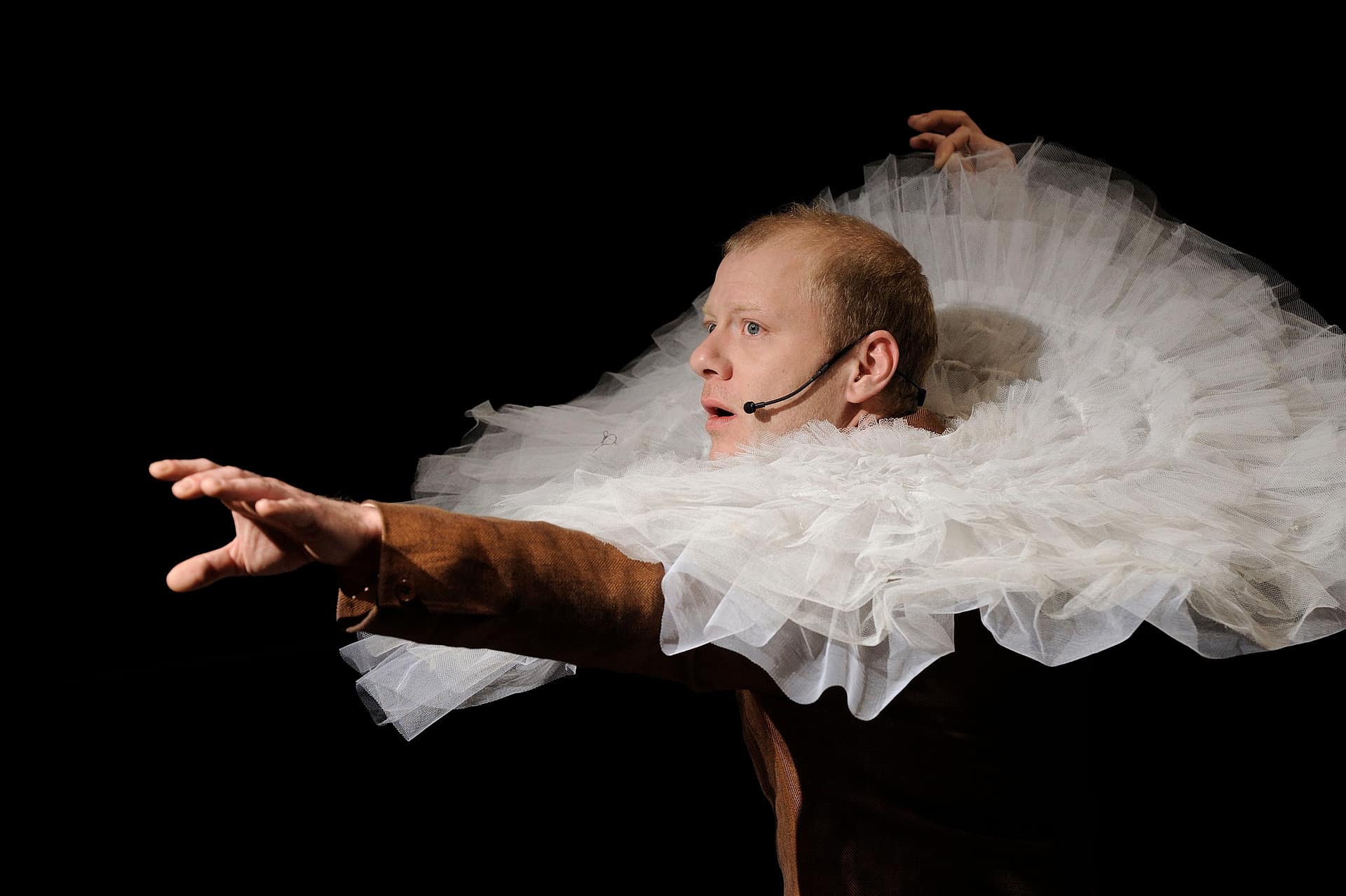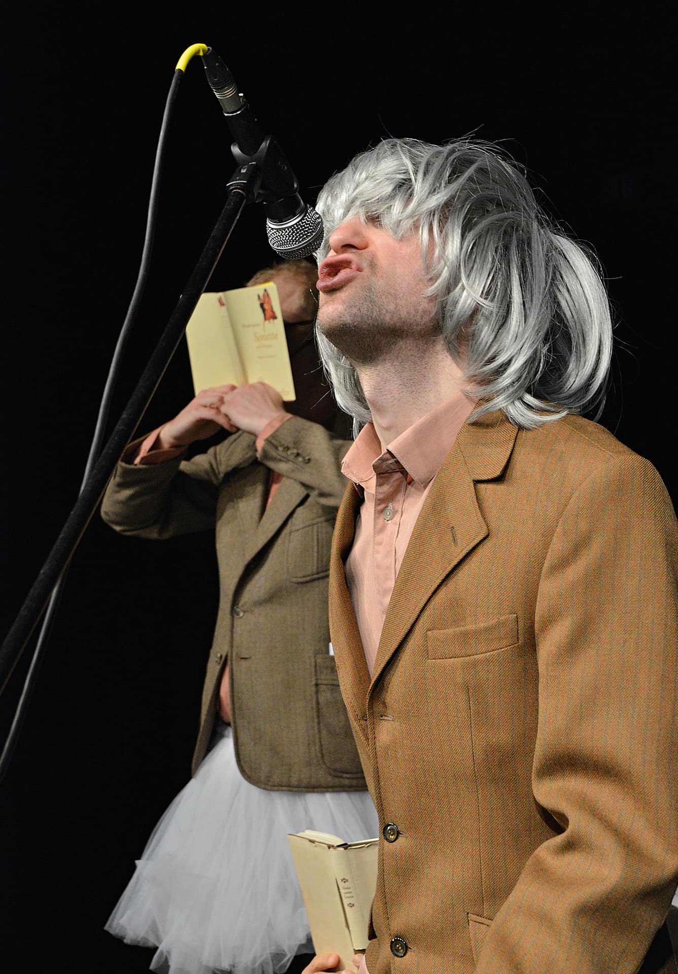 ...Sprachexperimentell, jedoch im schönsten Oxford-Englisch, kam auch das Puppentheater Halle daher, das im balletesken Tutu Shakespeare’s Sonnets elegisch deklamierte, freilich so hinreißend komisch, dass Shakespeares Geschichten in Gedichten über Liebe, Sex und Leidenschaften zu einem herrlichen Abgesang auf die abendländische Lyrik werden.