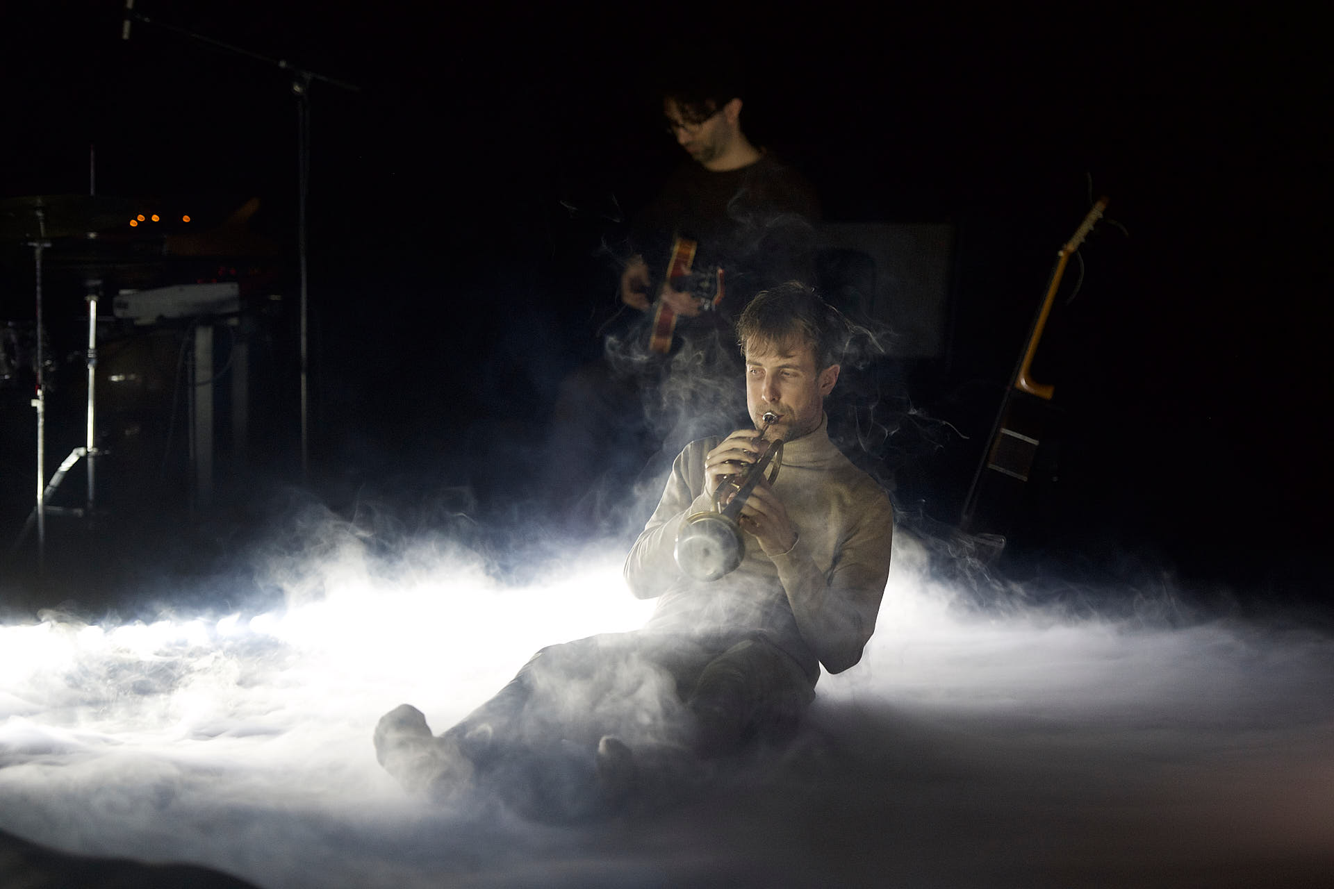 War, pandemic, recession – it’s almost astonishing how topical the poem still is these days… To transform the poem into a scenic-musical production, the team first looked at the many musical allusions that Eliot himself wove into his text. They range from the onomatopoeia of Richard Wagner’s operas to folk songs and ritual chants. Using this diversity as a basis, the ensemble developed its own composition to frame and accentuate the piece. The instrumentation of guitar, percussion, violin, trumpet and electronic elements allows the group a wide range of musical expression.
