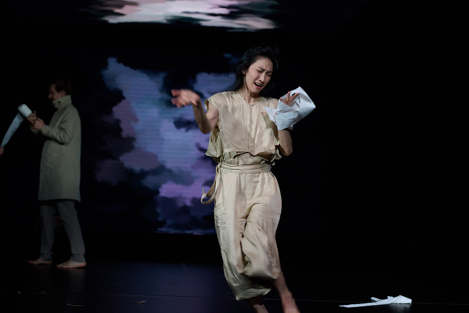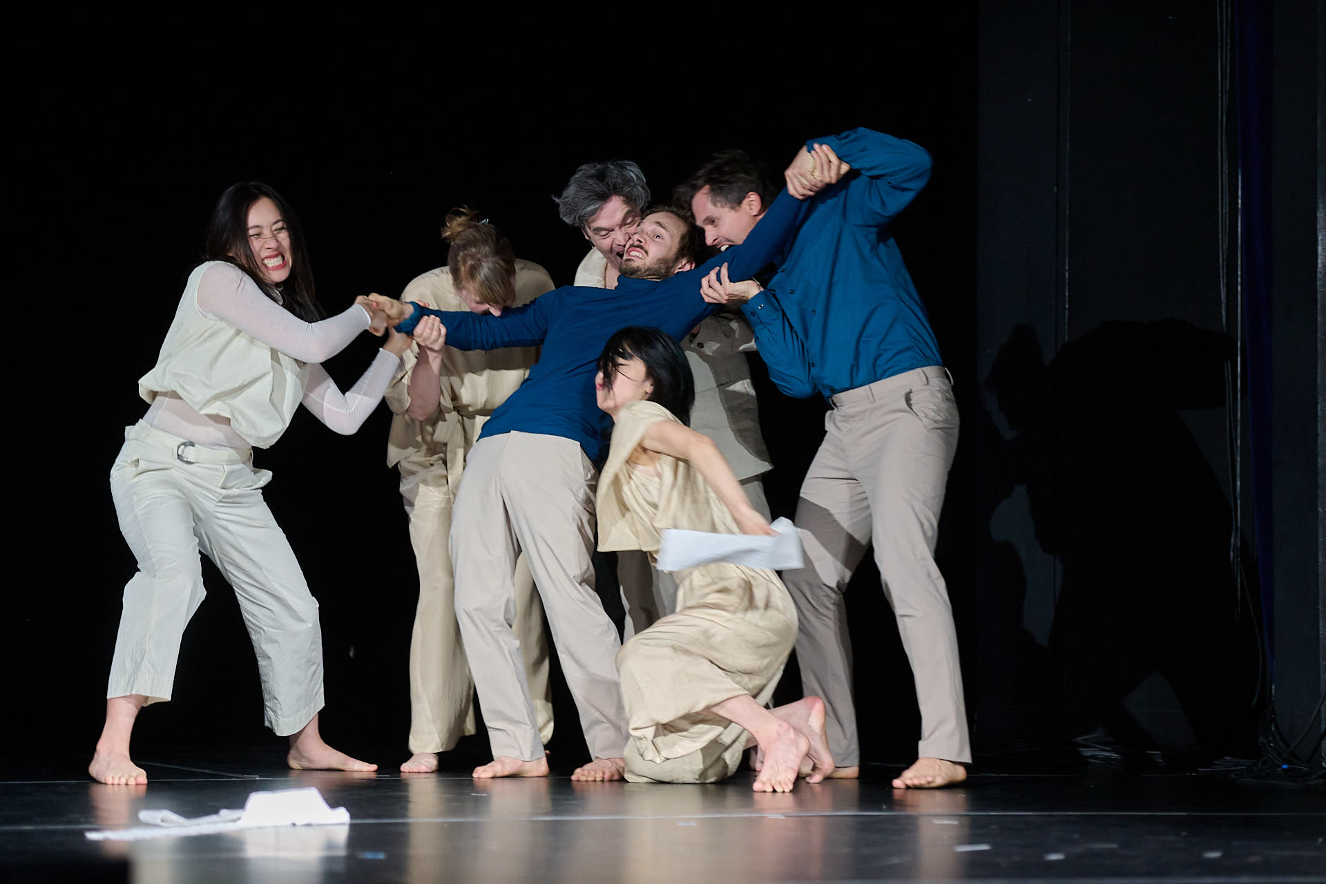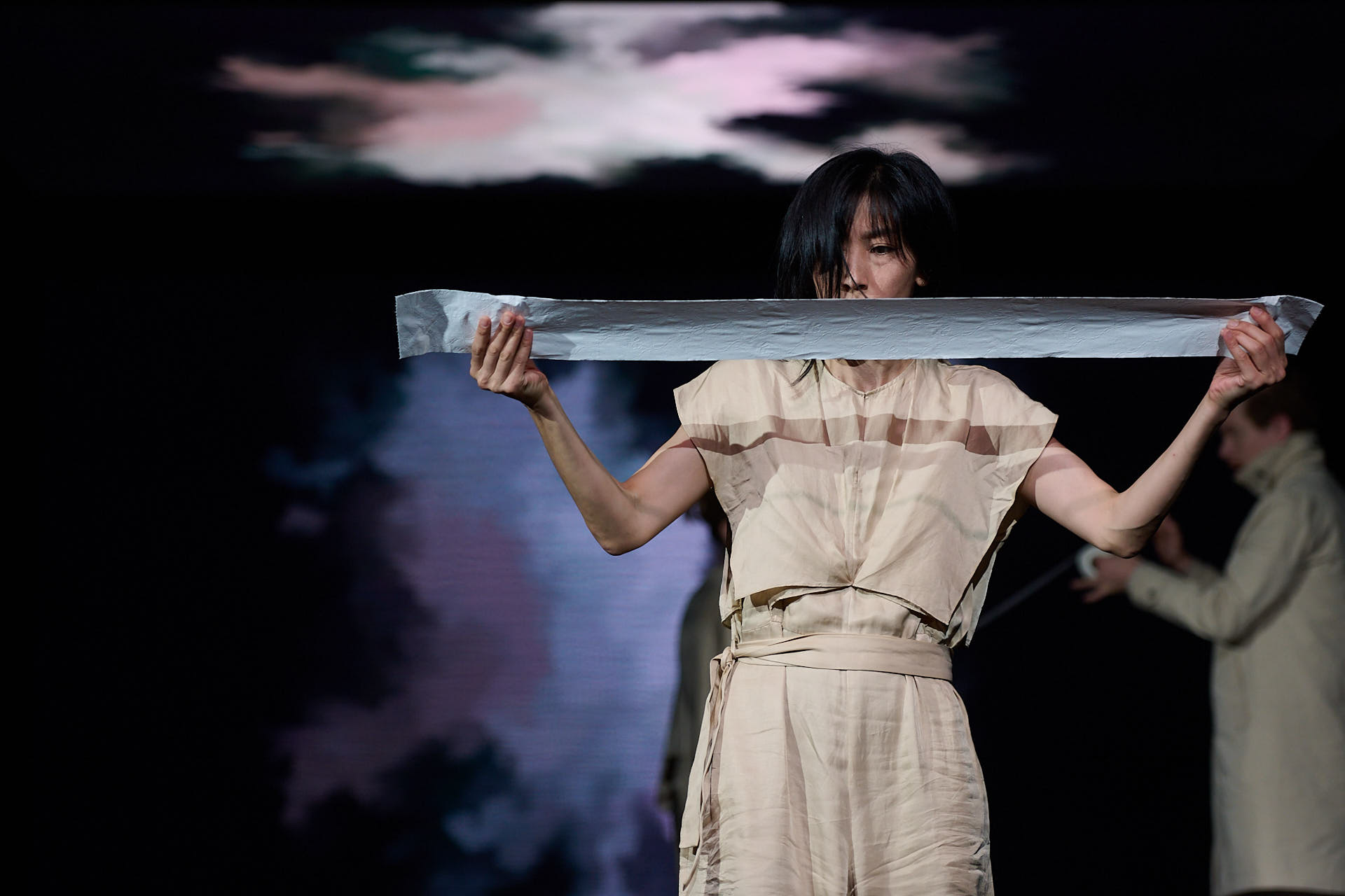Yes, quite terrible, this text; if I had read it before the performance, I would not have sat in the audience. But then I would have missed the grandiose aspect of this evening - namely that the troupe's new piece is completely different from what this agitational political kitsch makes one fear; despite all the virtuosity, especially of the expressive dance (stunning: Yui Kawaguchi) and the instrumentation, I constantly had the feeling that I was moving on the most fragile ground: for example, the recitation form - recitative I would like to call it - is above all one of constant questioning of oneself and others.