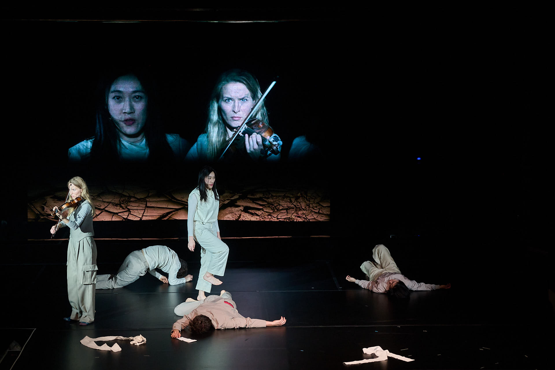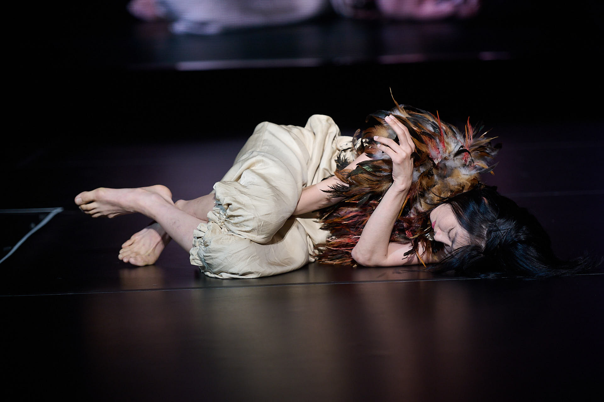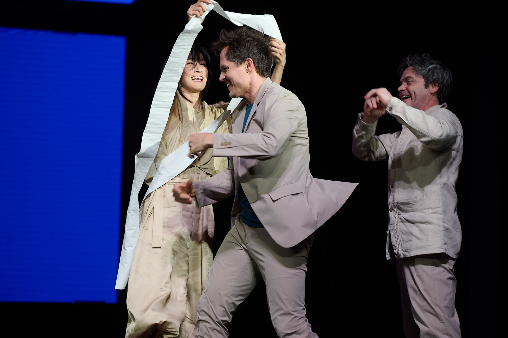 Yes, quite terrible, this text; if I had read it before the performance, I would not have sat in the audience. But then I would have missed the grandiose aspect of this evening - namely that the troupe's new piece is completely different from what this agitational political kitsch makes one fear; despite all the virtuosity, especially of the expressive dance (stunning: Yui Kawaguchi) and the instrumentation, I constantly had the feeling that I was moving on the most fragile ground: for example, the recitation form - recitative I would like to call it - is above all one of constant questioning of oneself and others.