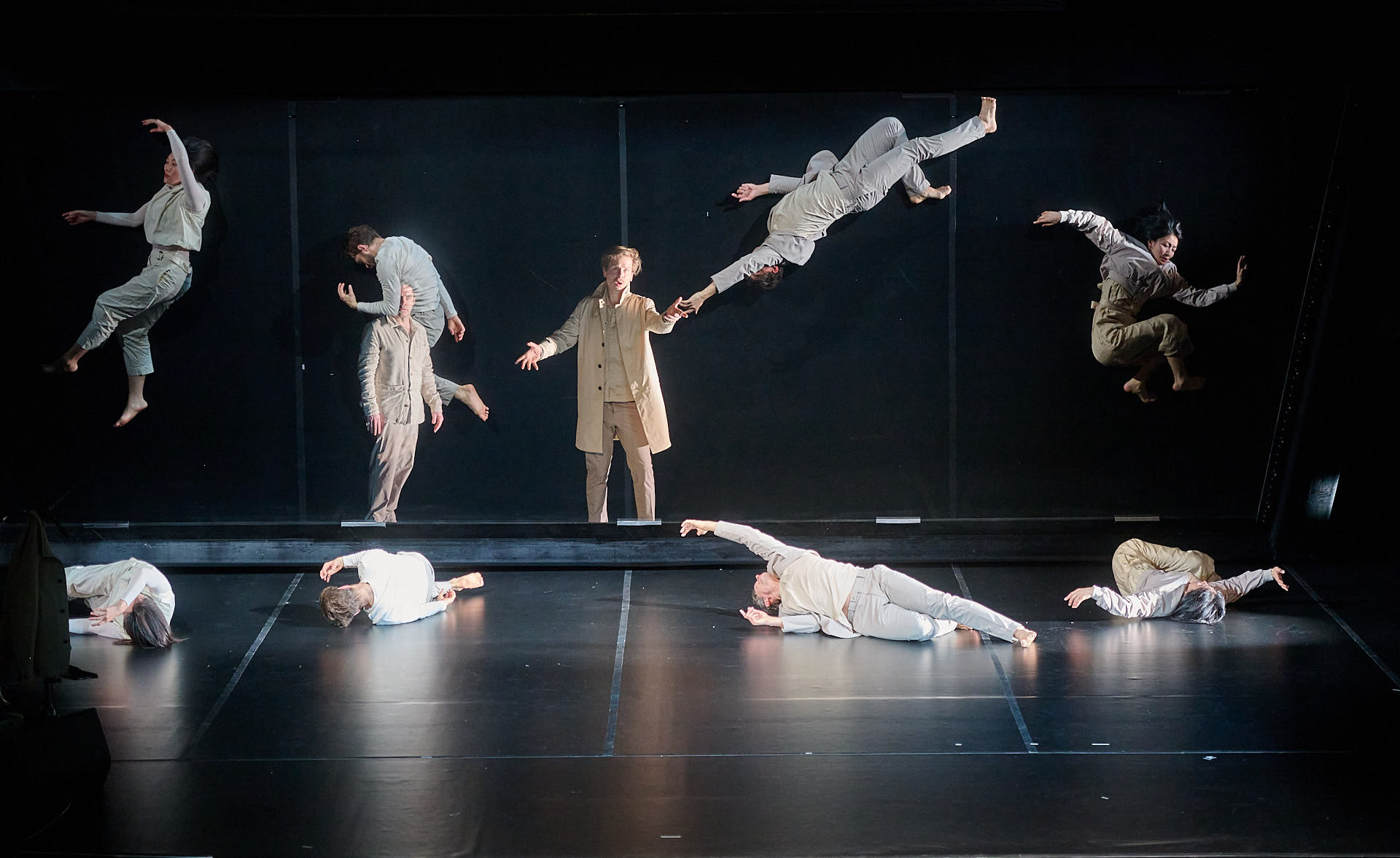 Hümpel: It’s completely different. We asked ourselves whether we should continue on that political path — and maybe we will. But this time, we’re going back to our other roots: poetic music theater. We're dealing with themes like fake news, self-deception, external manipulation, and what AI is doing to us — in short, everything that introduces falsehood into our lives. But this time, we approach it very personally. We go from global political and religious conflicts into the intimate private sphere. And I think it's become a heartwarming evening, one that gives hope, because the group works together with such tenderness and intensity — between dance, singing, and text. Plus this insane AI technology and Oliver Proske’s incredible stage design, where we literally see how we’re being tricked: people appear to fly even though they’re lying on the ground. We show how it’s done — and yet we still fall for the illusion. For me, that’s a metaphor for what we let society do to us.