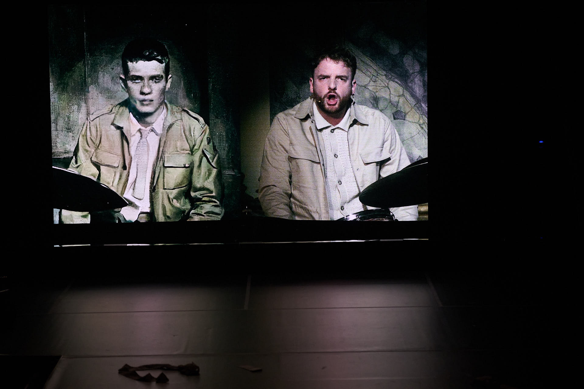 On stage, the drummer sings this song, dressed in an orange life vest. Simultaneously, his image appears on the mirror surface – and next to it, a second, AI-generated likeness also in an orange vest. As the song progresses, this face and details of the vest change continuously, revealing ever-new faces in the reflection. The impression arises that the singer is voicing the concerns of many. But the question remains: can a single person truly speak for many? Probably not.