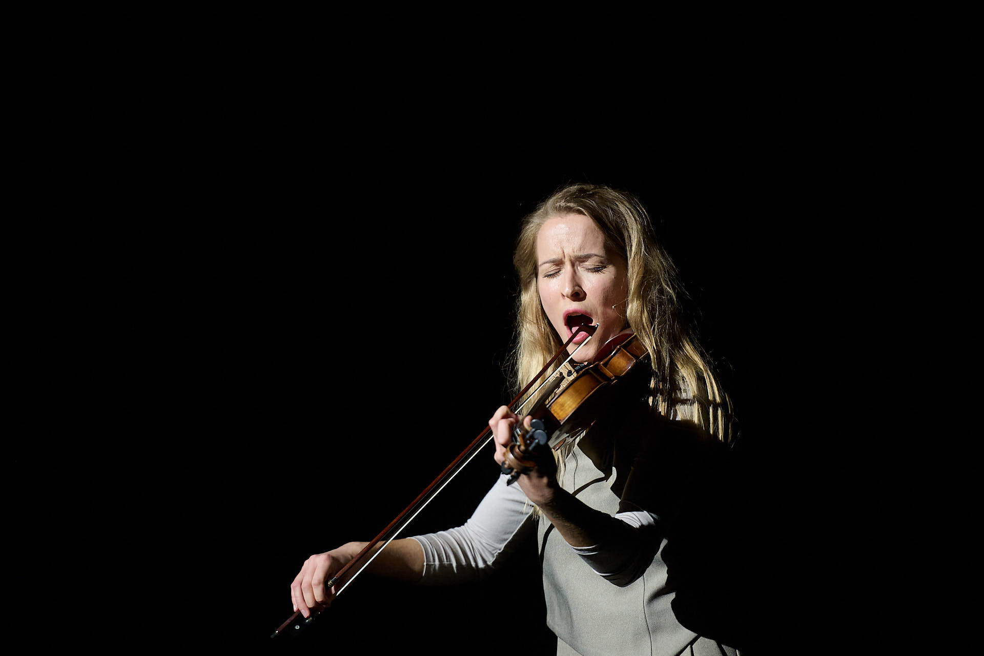 This field of tension gave rise to a two-hour kaleidoscope of around twenty pieces of music from Handel to Chopin, Jacques Offenbach, Shostakovich, Ligeti and John Lennon, set for violin, trumpet, piano, electric guitar and percussion, in some cases enhanced by synthesiser and electronically alienated. This was accompanied by texts that take a rather pessimistic view of human behaviour and spectacular ballet interludes.